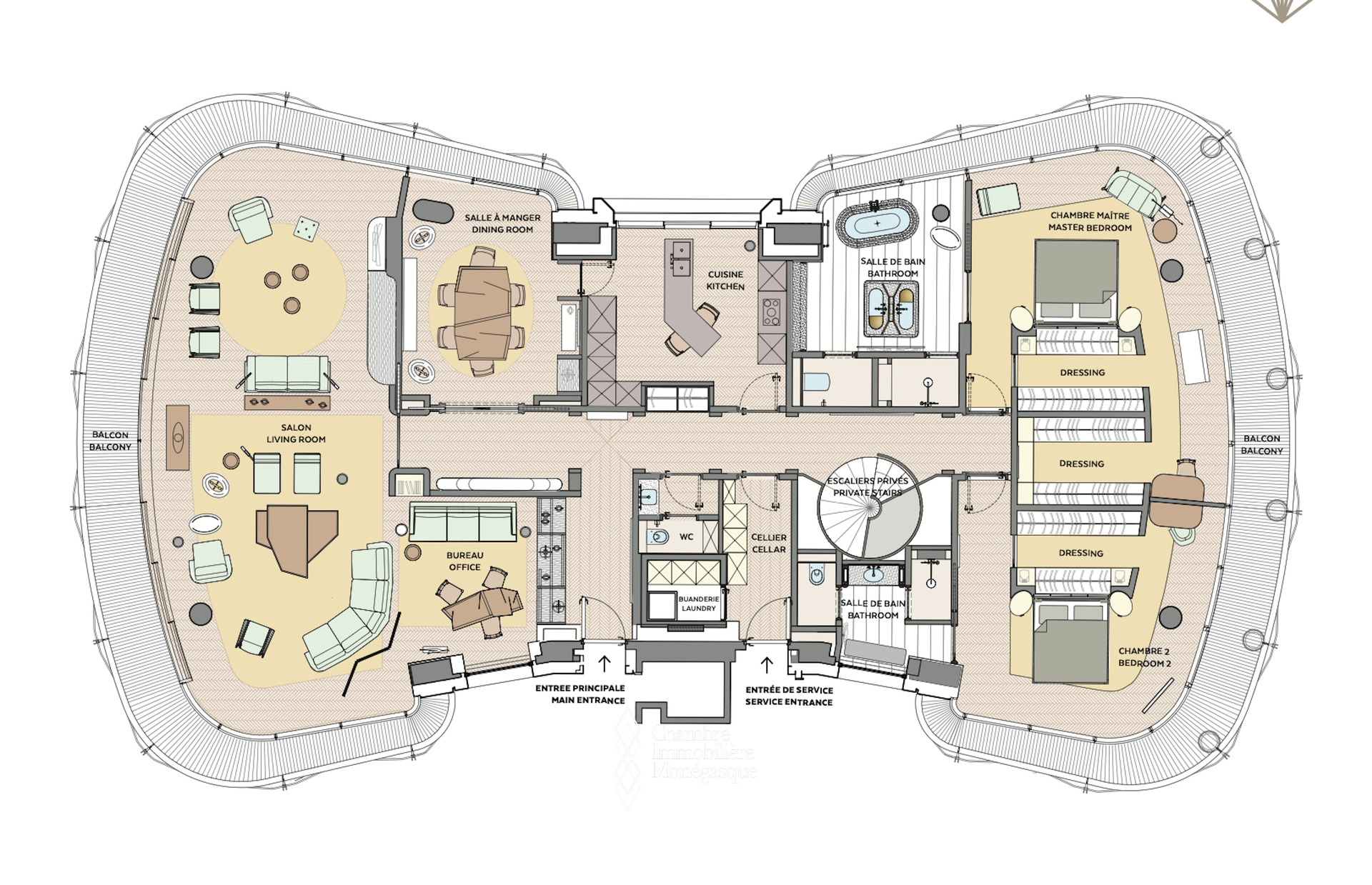 Un appartement en duplex de 5 chambres dans le One Monte Carlo, Bloc E - 4ème et 5ème étages, à côté des jardins du Casino, de l’Hôtel de Paris, et de toutes les commodités du Carré d’Or.