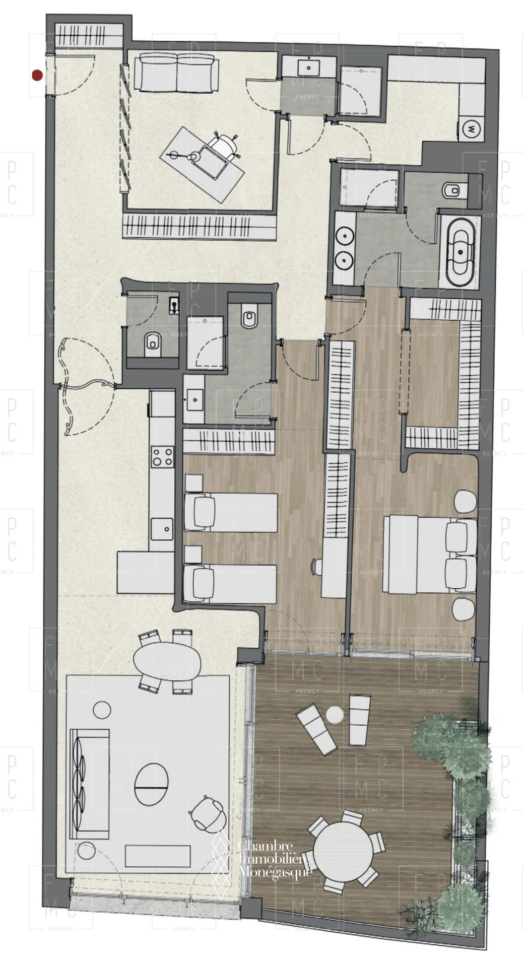 A l’entrée de Monaco, la résidence dénommée "L'Exotique" surplombe toute la Principauté. L'appartement est exposé Sud-Est et bénéficie donc d'une pleine luminosité. Cet immeuble, situé juste à l'entrée de Monaco donne un souffle de modernité et d'élégance à la Principauté. Ce luxueux bien d’architecture contemporaine offre des prestations haut de gamme avec un soin particulier du détail. L'immeuble bénéficie au 1er étage d'une magnifique piscine intérieure et d'une grande salle de sport. Ce spacieux appartement de 3 pièces bénéficie d'une spacieuse et profonde terrasse jouissant d'une magnifique vue panoramique sur la mer.