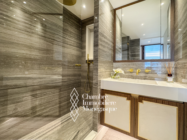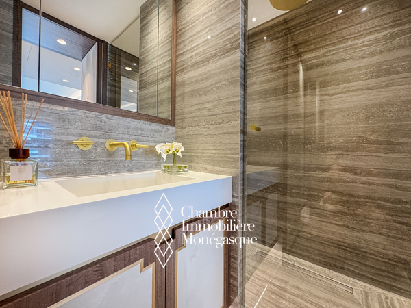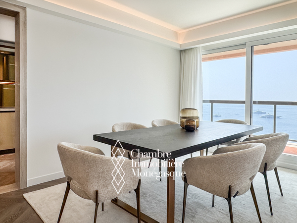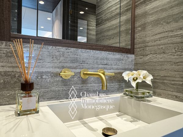 Dans la prestigieuse résidence Monte Carlo Sun, un appartement de 4 pièces élégamment rénové et décoré avec raffinement vous attend, répondant aux plus hautes exigences en matière de confort et de qualité de vie. Il allie sophistication intemporelle et confort moderne au plus haut niveau. Le vaste séjour avec salle à manger est conçu en espace ouvert et séduit par ses baies vitrées toute hauteur, qui créent une atmosphère exceptionnellement lumineuse et accueillante. De grandes portes coulissantes en verre mènent à la terrasse privée, permettant une transition fluide entre l’intérieur et l’extérieur. Son orientation sud-est offre une vue panoramique imprenable et dégagée sur la mer Méditerranée. La cuisine, équipée d'appareils haut de gamme, séduit par son design raffiné – idéale pour les amateurs de gastronomie exigeants. Les chambres sont spacieuses et aménagées avec goût. De grands placards intégrés sur mesure offrent un généreux espace de rangement. Les salles de bains attenantes, réalisées en marbre noble, complètent le caractère luxueux de cette propriété exclusive. La résidence Monte Carlo Sun propose à ses résidents un service de conciergerie de premier ordre disponible 24h/24, ainsi qu’une piscine extérieure soigneusement entretenue – parfaite pour des moments de détente sous le soleil de la Côte d’Azur. À proximité immédiate se trouvent le célèbre Country Club, le club de tennis ainsi que les plages, accessibles à pied en quelques minutes. L’offre comprend également une grande cave et une place de parking privative dans le garage souterrain de la résidence.