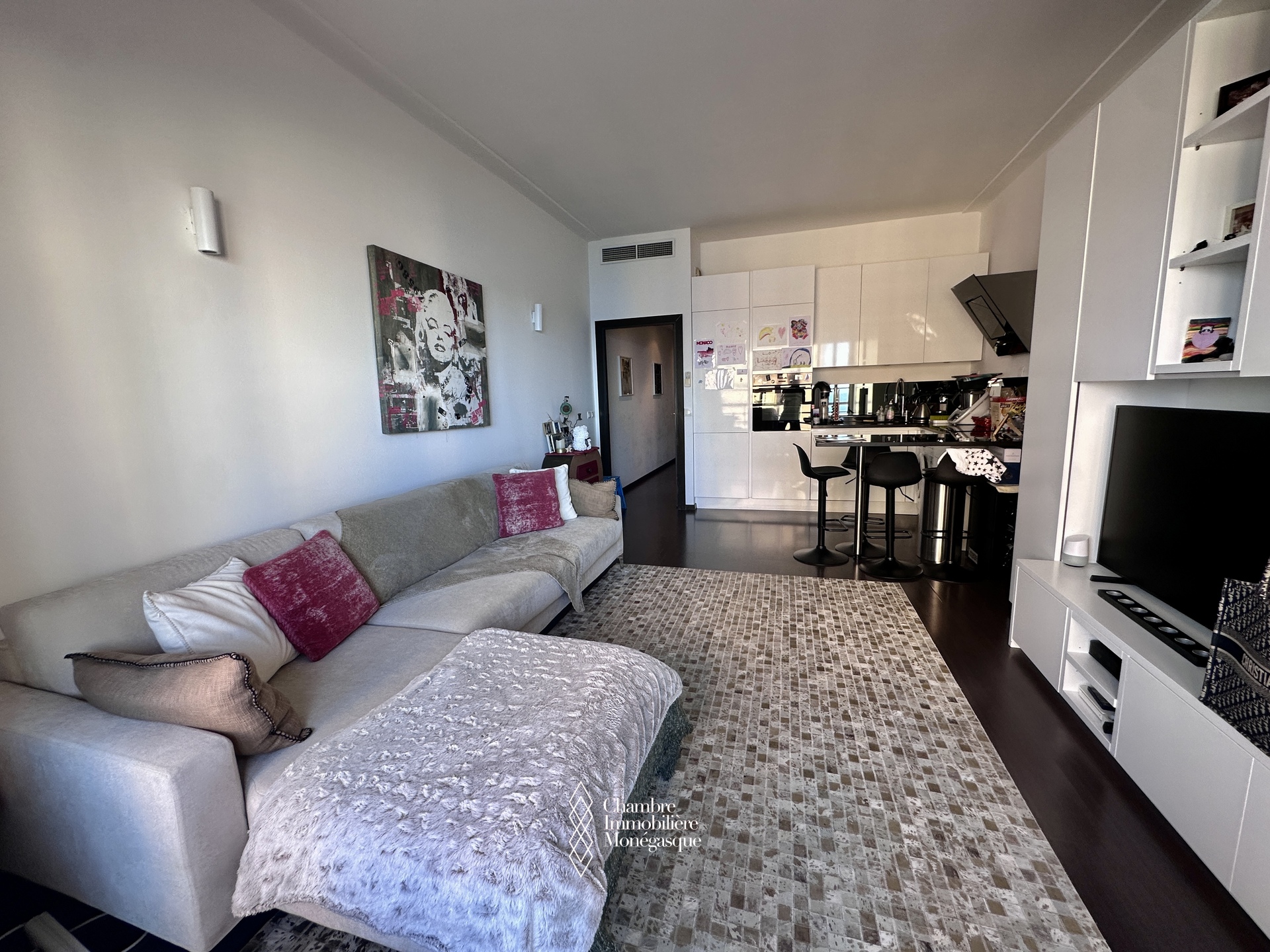 Santa Monica -  Bell appartement lumineux situé dans une résidence moderne à proximité de la place des Moulins et des plages du Larvotto. L'appartement offre une belle vue sur Monaco et la mer et se compose comme suit :
