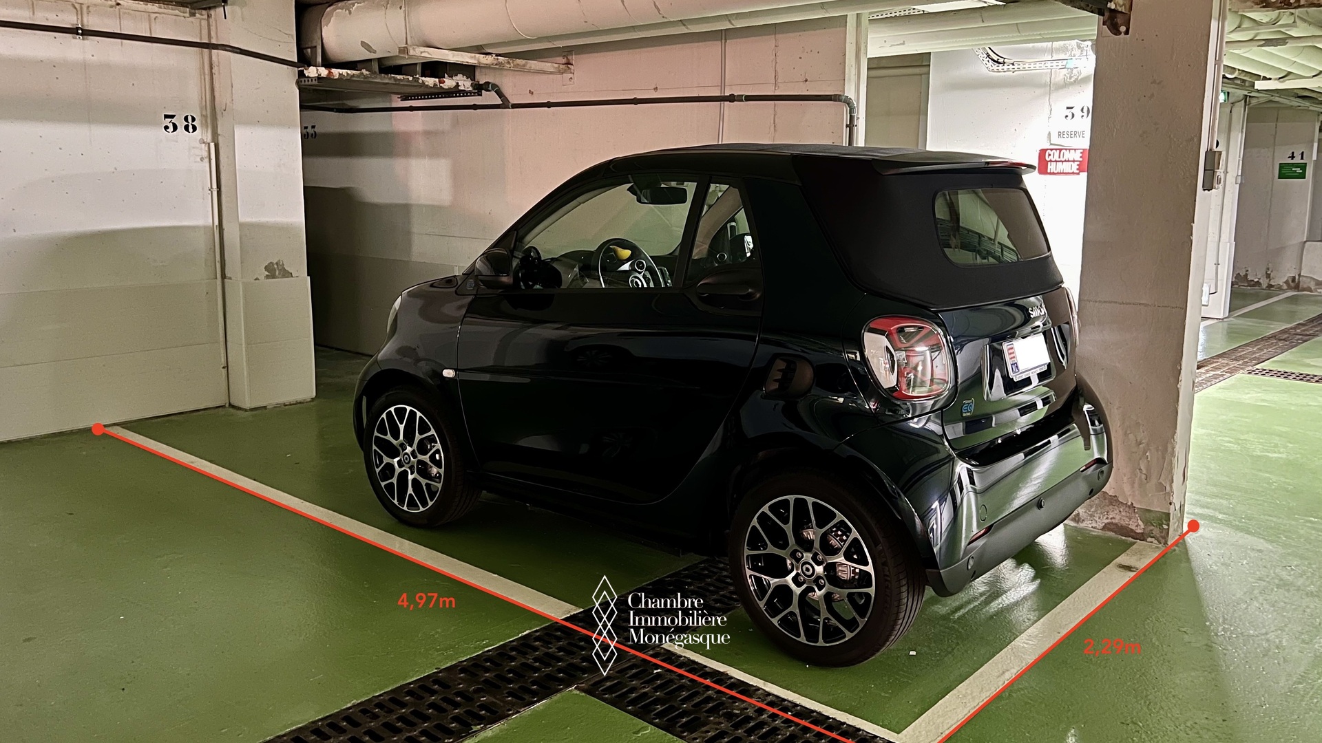 Place de parking située dans la résidence Le Botticelli, quartier Fontvieille – Place des Oliviers, bénéficiant d’un service de sécurité 24h/24 et 7j/7.