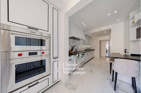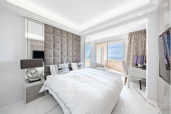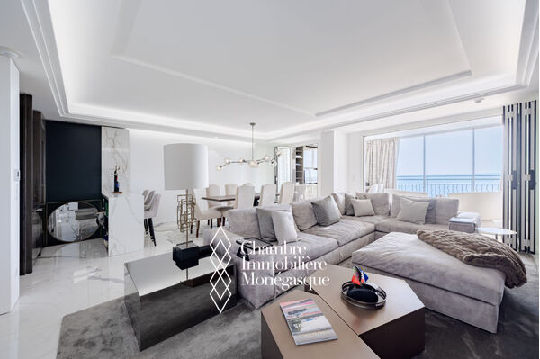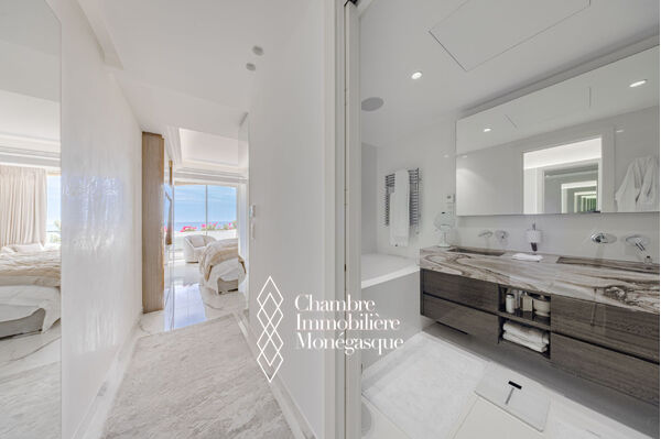 CO-EXCLUSIVITE Luxueux 4 pièces entièrement rénové, combinant finitions de prestige, matériaux de qualité et modernité, avec une vue à couper le souffle sur la Méditerranée, les jardins luxuriants et les falaises. Cet appartement tout en lumière naturelle, offre des beaux espaces, des triples vitrages allant du sol au plafond et des terrasses en succession harmonieuse entre intérieur et extérieur. Le salon comprend une cuisine haut de gamme et un bar chic, tandis que chaque chambre bénéficie d'une merveilleuse vue sur la mer. Une climatisation indépendante et un système de chauffage au sol assurent votre bien-être toute l'année. Les résidents ont accès à un service de conciergerie, à une piscine privative et à un excellent emplacement à proximité du port. Le bien inclut deux places de stationnement souterrain et offre l'opportunité d'acquérir deux places de stationnement supplémentaires.