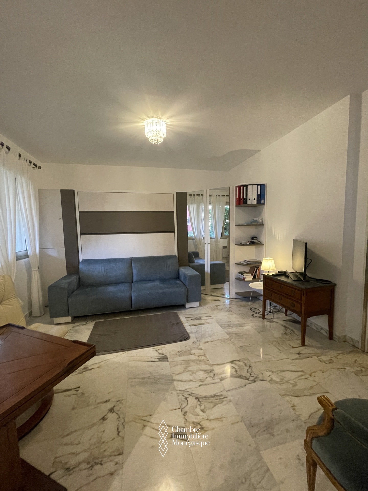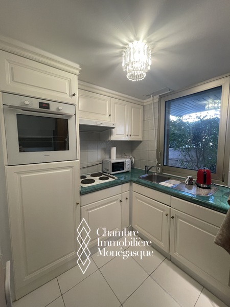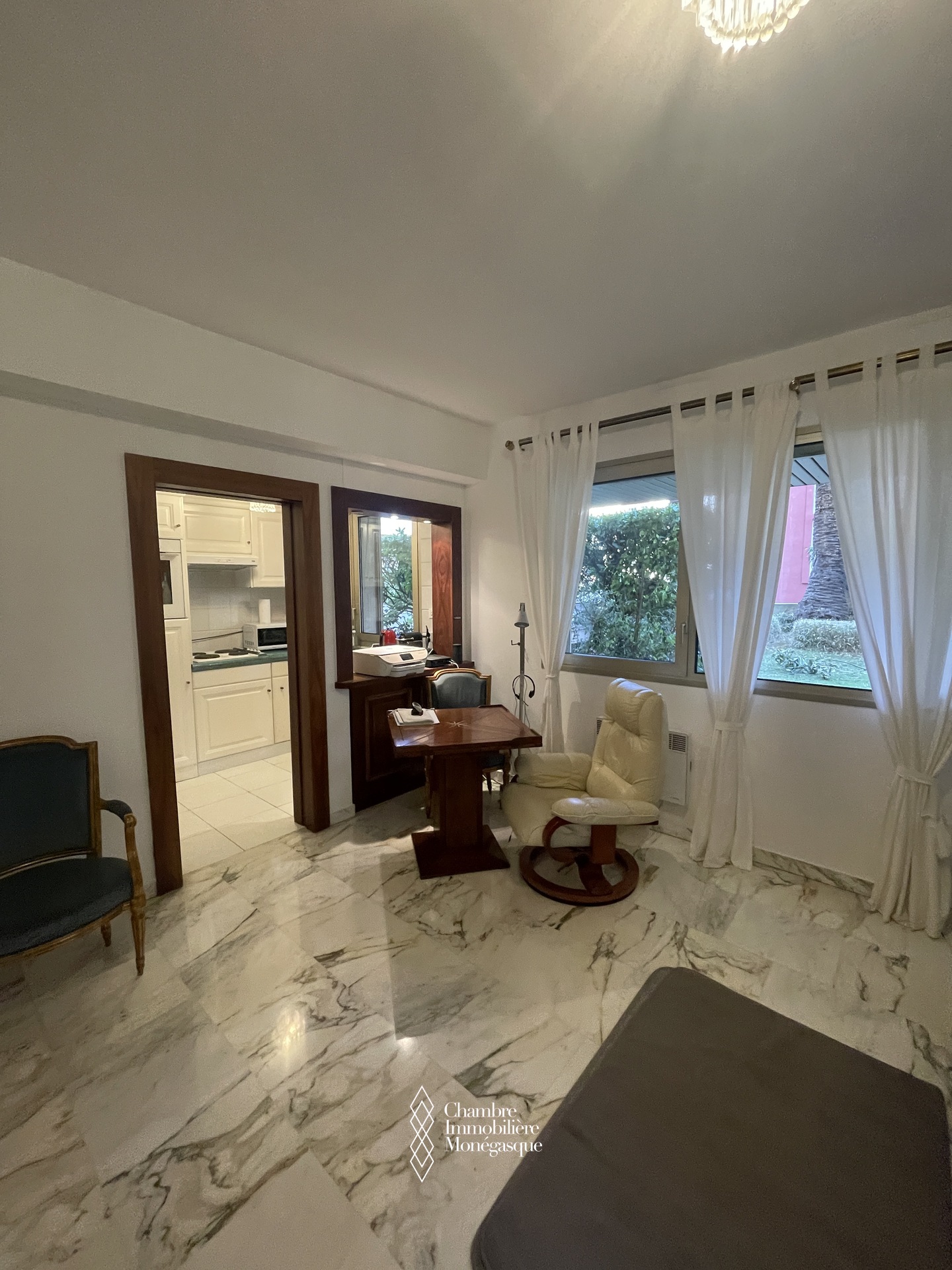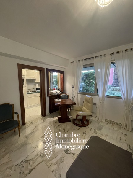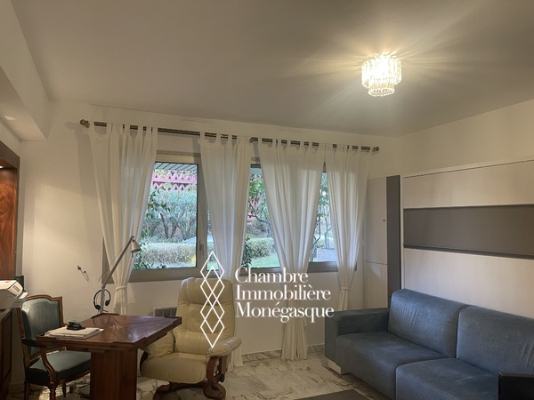 Dans l’immeuble Les Oliviers, situé dans le quartier du Jardin Exotique, avec concierge, studio au rez-de-chaussée comprenant une pièce principale.