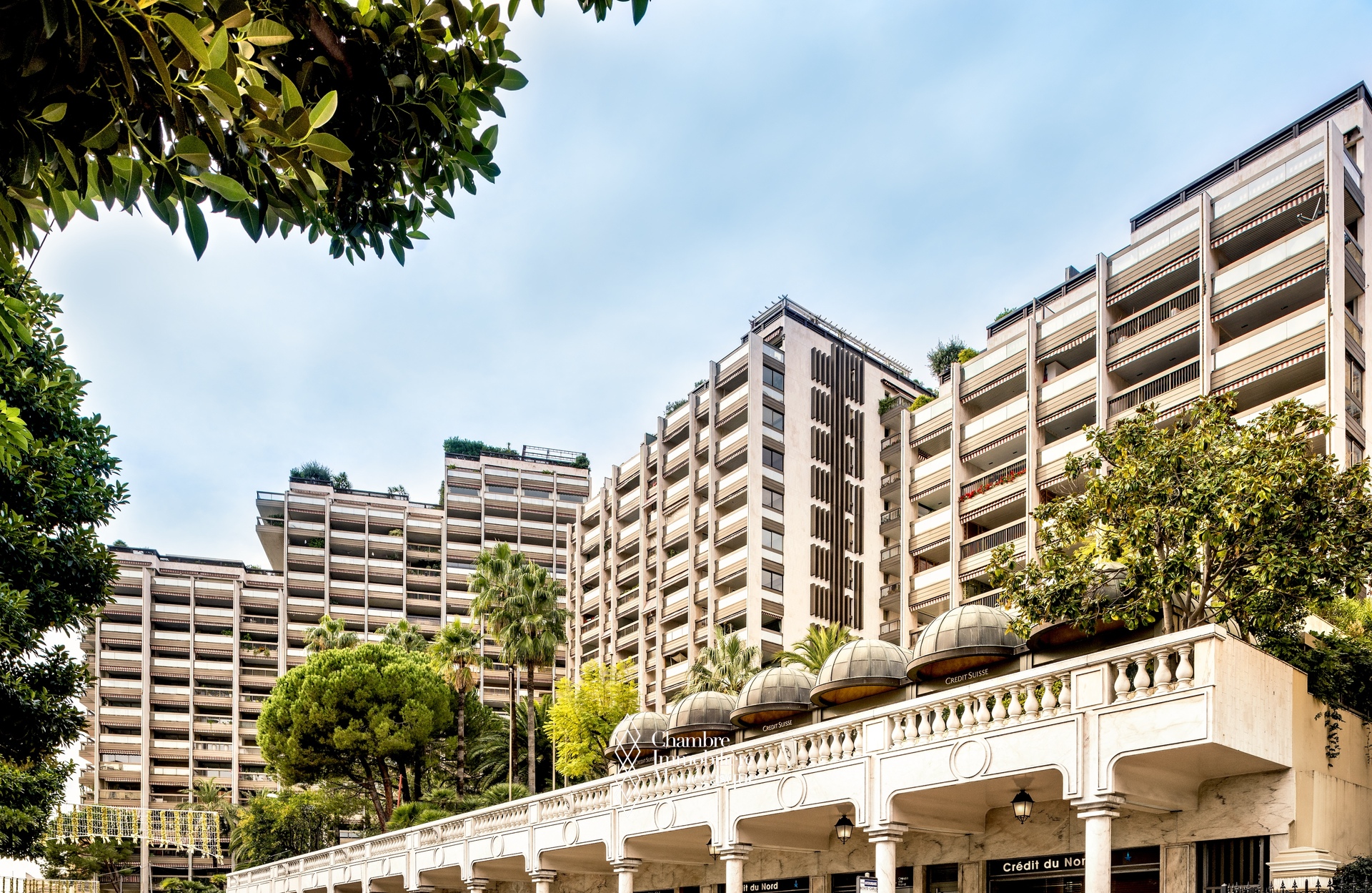 Appartement de deux chambres à l’état neuf à l’étage supérieur d’un immeuble de renom « Le Park Palace », situé au cœur de Monaco, à proximité du Casino.