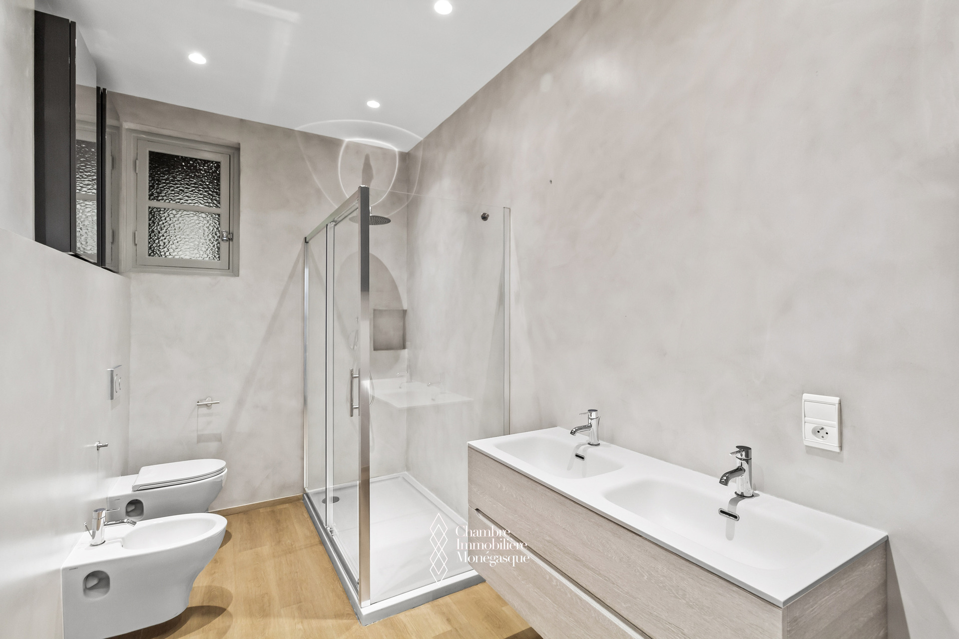 La résidence propose une conciergerie 24/7. L’accès aux commerces du boulevard des Moulins, à la Place du Casino et au Larvotto est rapide, notamment via un ascenseur public. Une cave et un grand box parking complètent le bien.