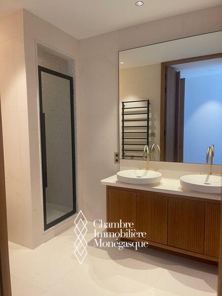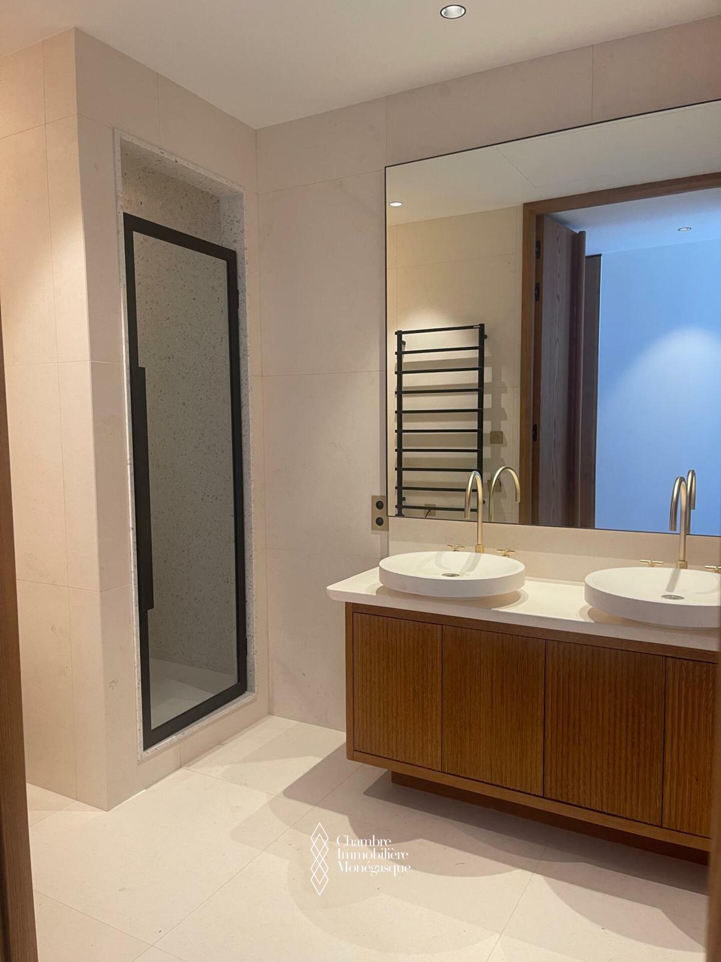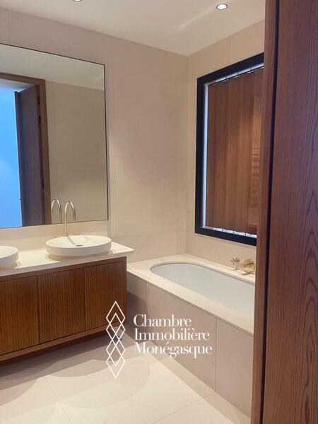 L’appartement offre un vaste séjour prolongé par une terrasse orientée mer, une cuisine moderne entièrement équipée, une buanderie, un toilette invité, ainsi que deux chambres en suite dotées chacune de son propre balcon et d’un dressing, également tournés vers la mer.