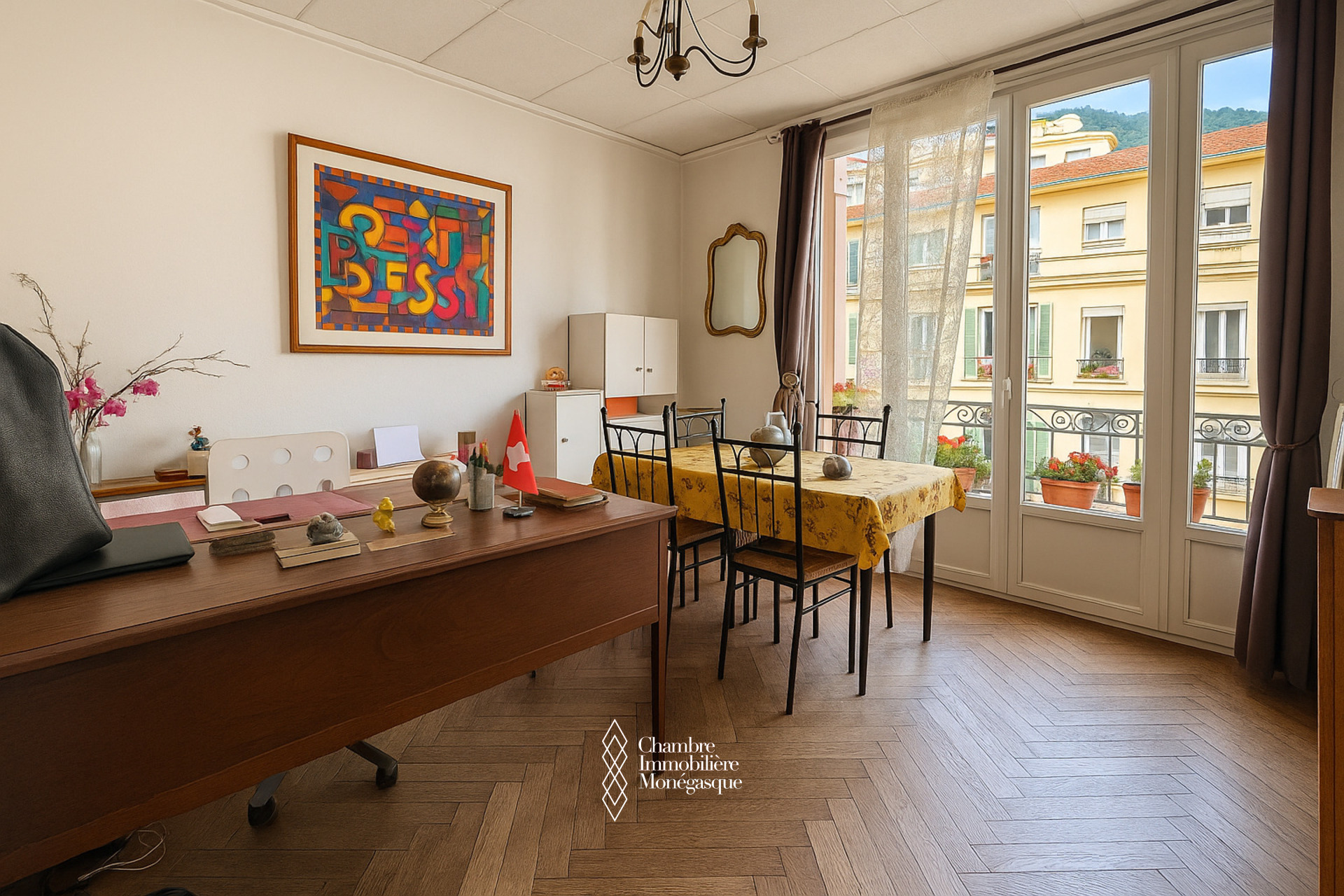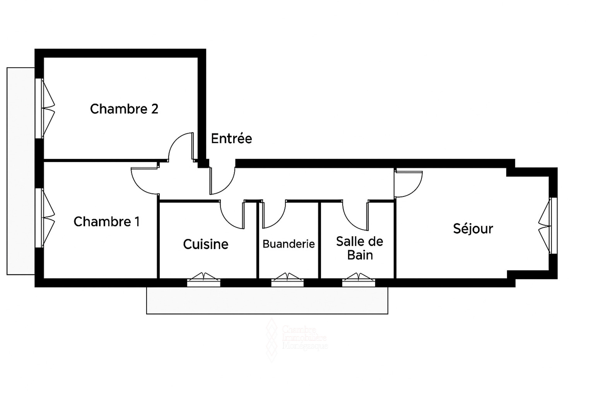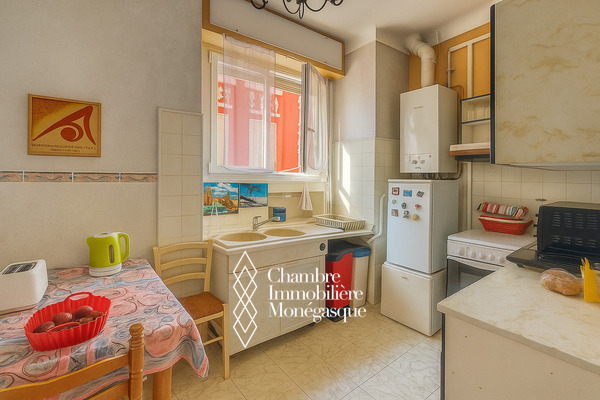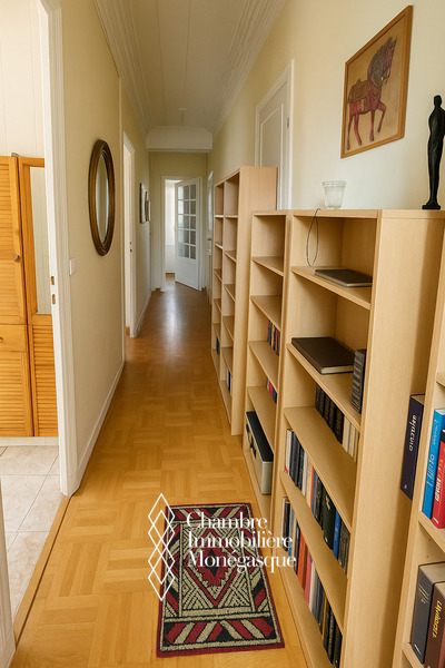 Cet appartement de trois pièces principales offre un agencement fonctionnel et un beau potentiel de rénovation. Dès l’entrée, un large couloir distribue les différentes pièces : sur la droite, deux chambres lumineuses s’ouvrent sur un premier balcon. Dans la continuité, la cuisine indépendante, la buanderie et la salle de bain bénéficient d’un second balcon, apportant un agréable espace extérieur supplémentaire. Le salon, situé en bout de couloir, complète harmonieusement l’ensemble.