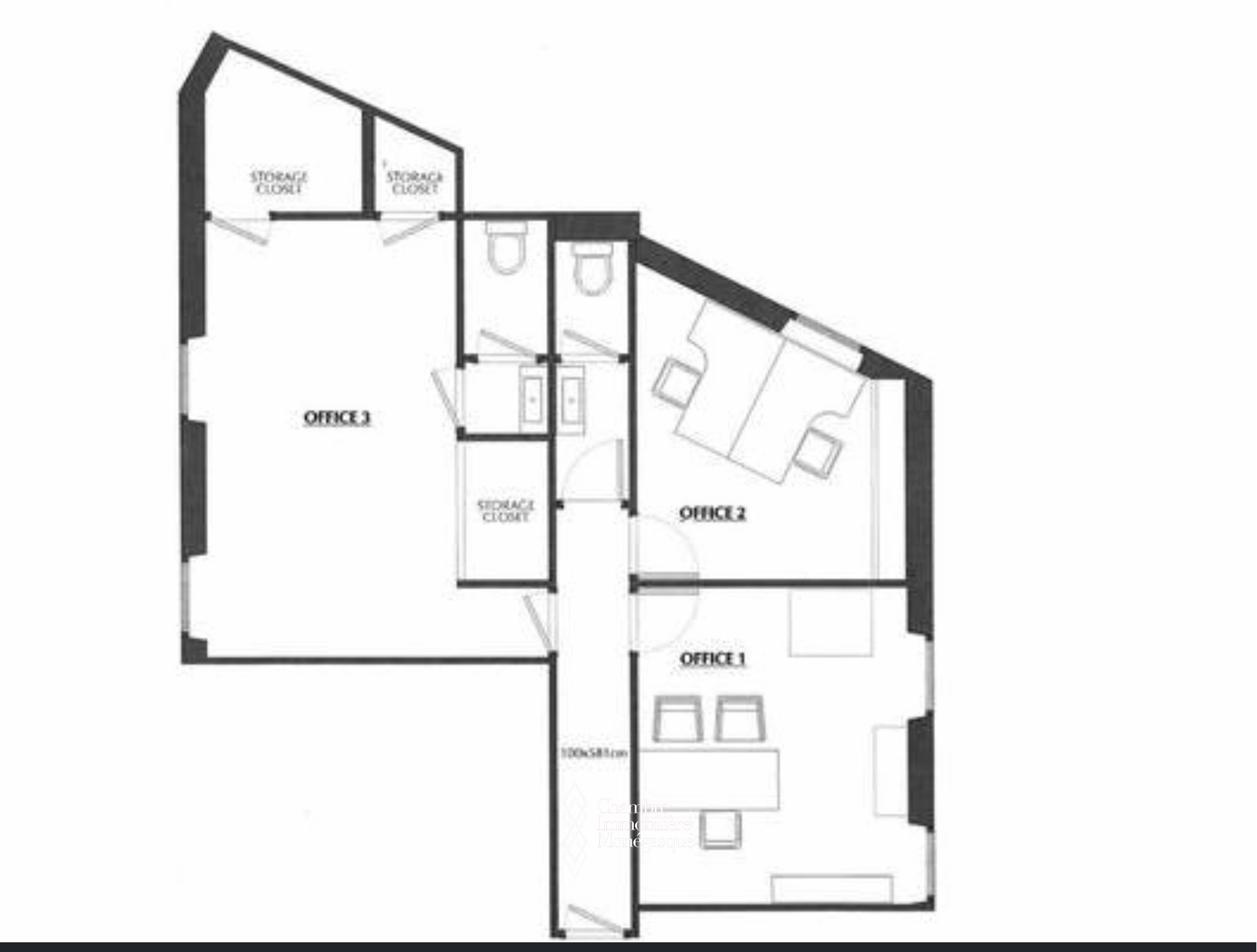 Le bureau se compose d’une entrée avec couloir et dégagement, de deux chambres, de deux toilettes, ainsi que d’un vaste séjour équipé de rangements, d’un espace dressing et d’une penderie.