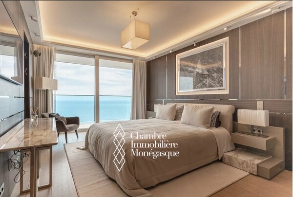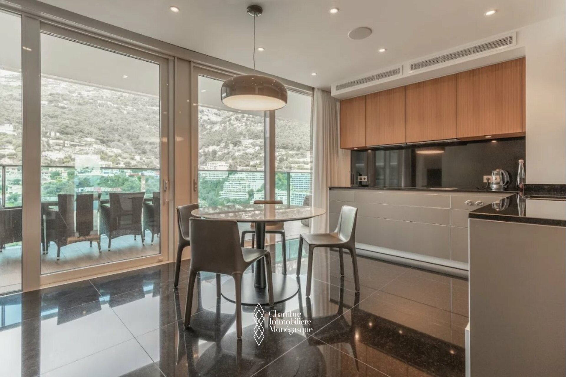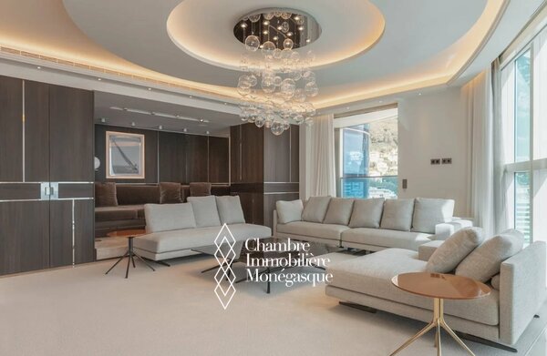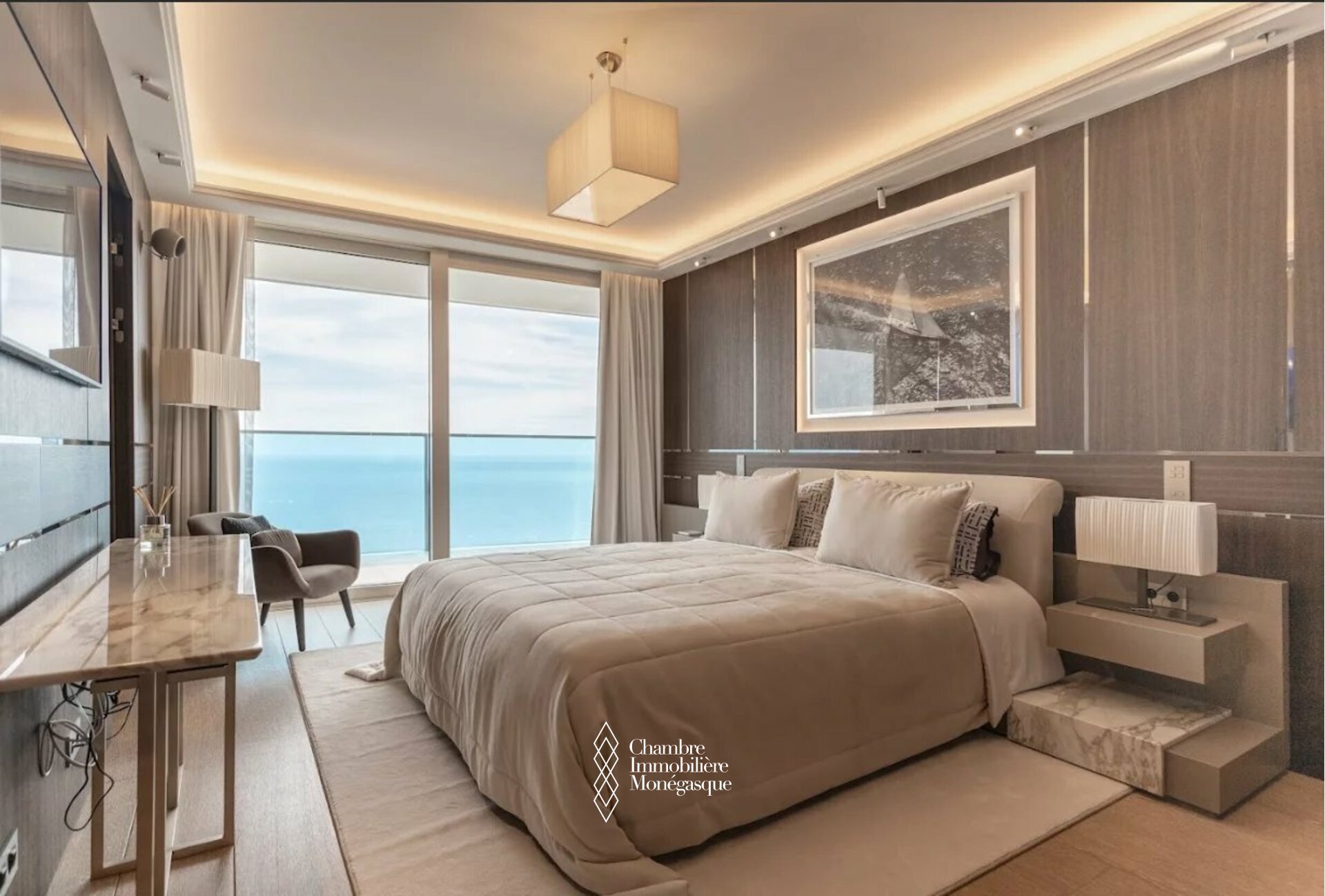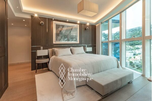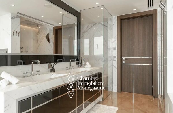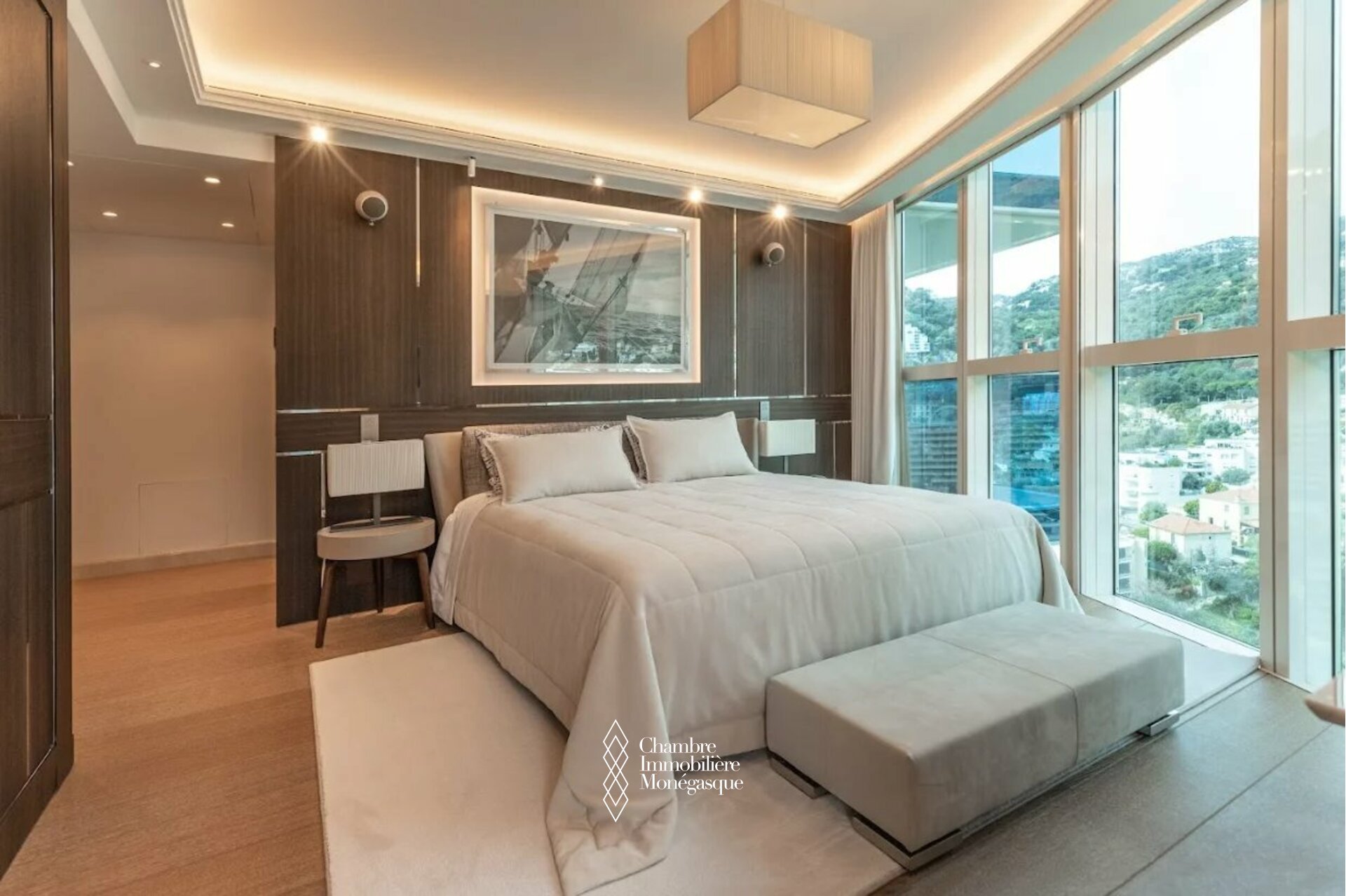 L'appartement comprend un majestueux hall d'entrée ouvrant sur un double séjour lumineux, une cuisine moderne entièrement équipée, quatre chambres spacieuses, chacune avec sa propre salle de bains et son dressing. Deux magnifiques et larges terrasses offrent des vues spectaculaires sur la Méditerranée, les côtes monégasques, françaises et italiennes.