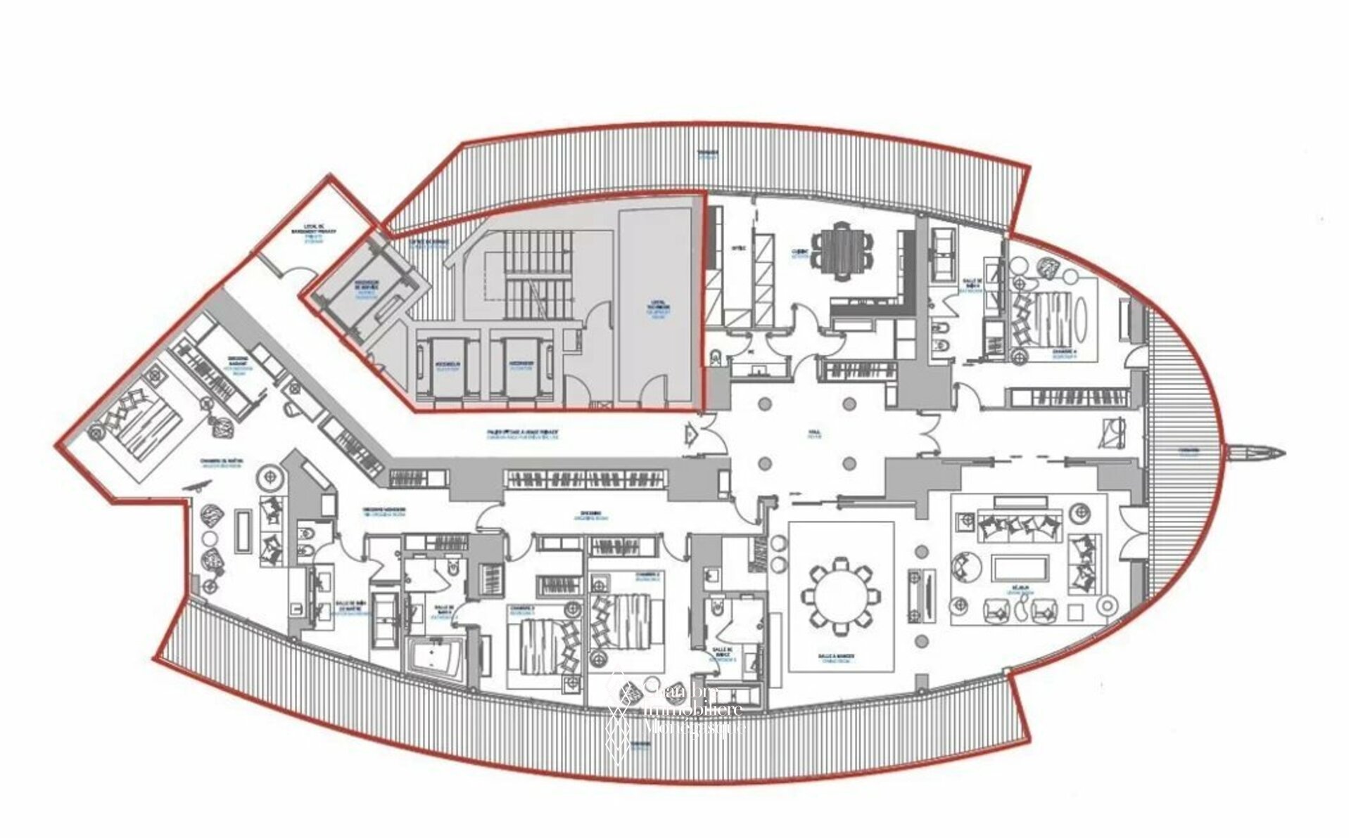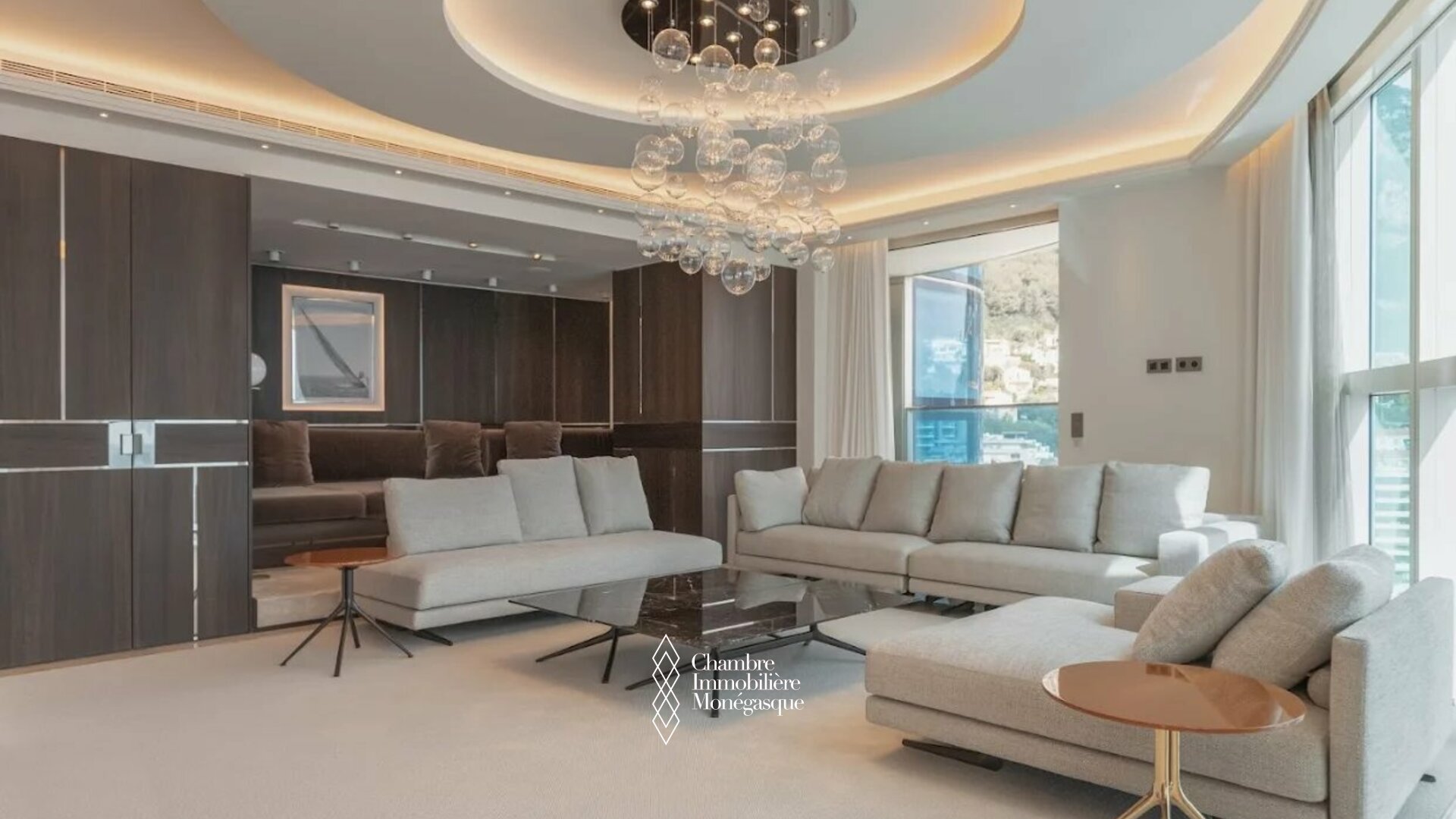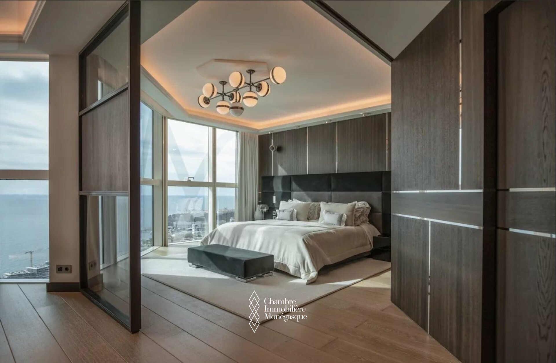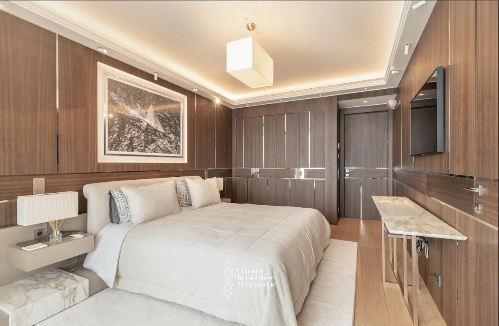 L'appartement comprend un majestueux hall d'entrée ouvrant sur un double séjour lumineux, une cuisine moderne entièrement équipée, quatre chambres spacieuses, chacune avec sa propre salle de bains et son dressing. Deux magnifiques et larges terrasses offrent des vues spectaculaires sur la Méditerranée, les côtes monégasques, françaises et italiennes.