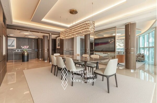 Découvrez un luxe inégalé dans le quartier exclusif de la Tour Odéon, qui propose à la vente une propriété à couper le souffle. Cette résidence unique, le seul appartement de son étage, dispose de quatre chambres spacieuses, chacune agrémentée d'une salle de bains en marbre et d'une vue captivante sur la mer. Le vaste double salon constitue le cœur de la maison, offrant un vaste espace pour la détente et le divertissement, tout en surplombant la mer. Elégamment meublé, cet appartement prêt à être emménagé incarne la sophistication. Les résidents bénéficient d'un accès privilégié au spa et à la piscine intérieure de 2000 m² de l'immeuble, ce qui leur assure un mode de vie d'un confort et d'un loisir inégalés. Le célèbre Café Cipriani, situé dans l'enceinte de l'immeuble, offre des possibilités de restauration exceptionnelles. Avec une sécurité de premier ordre et des équipements exclusifs, cette propriété représente le summum de la vie de luxe à Monaco.