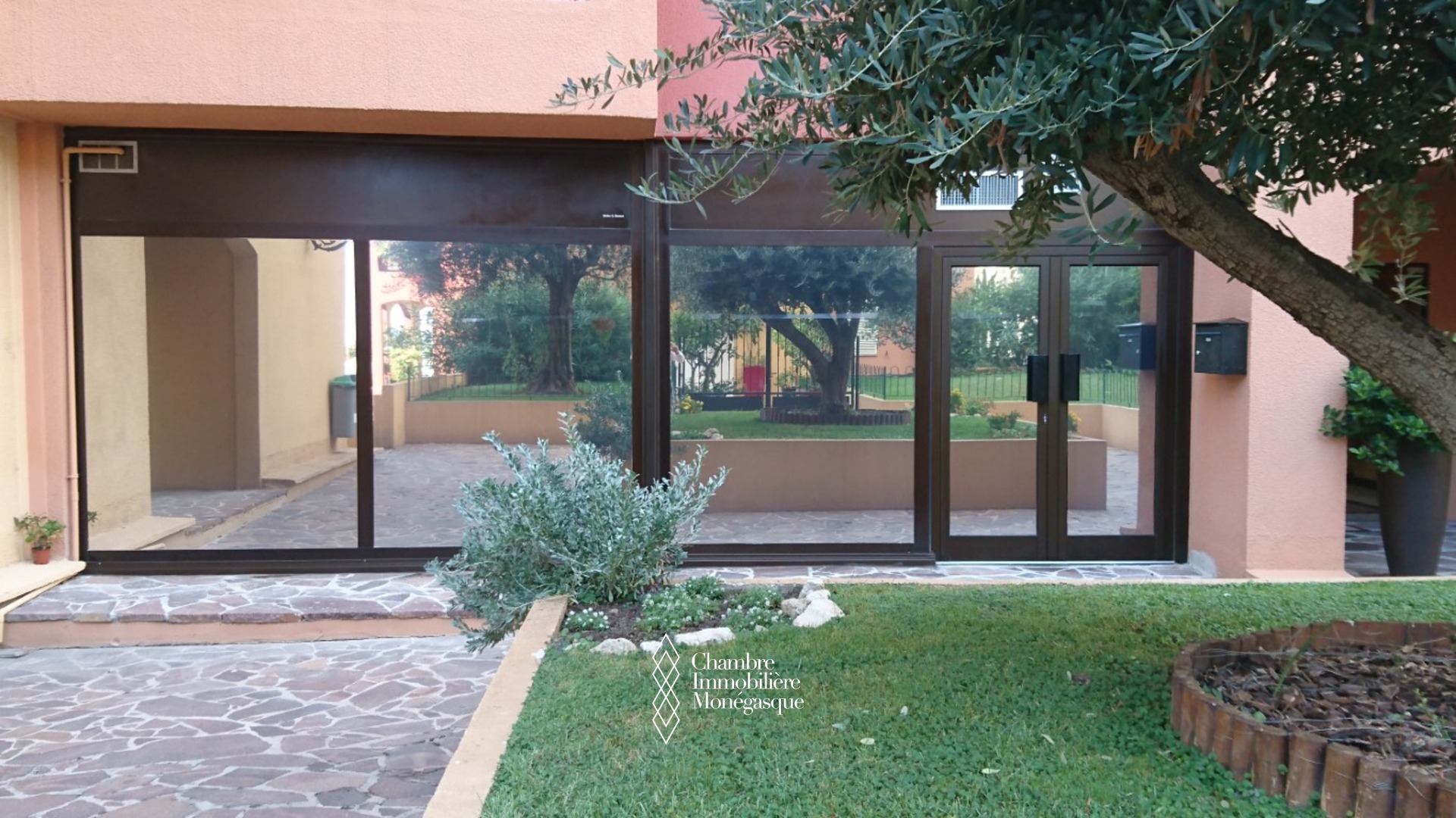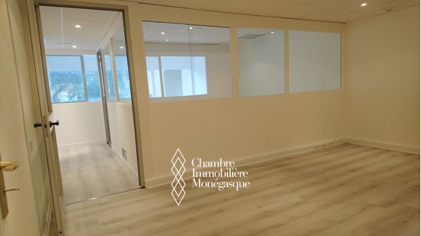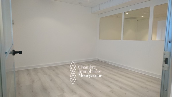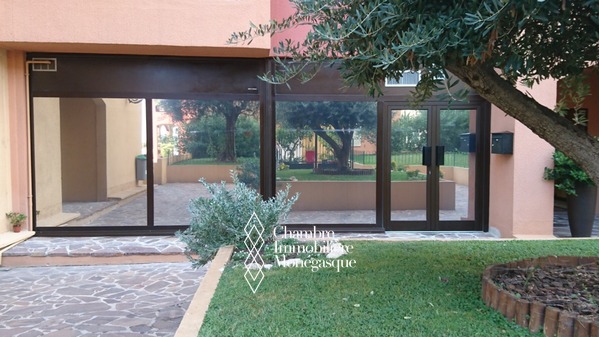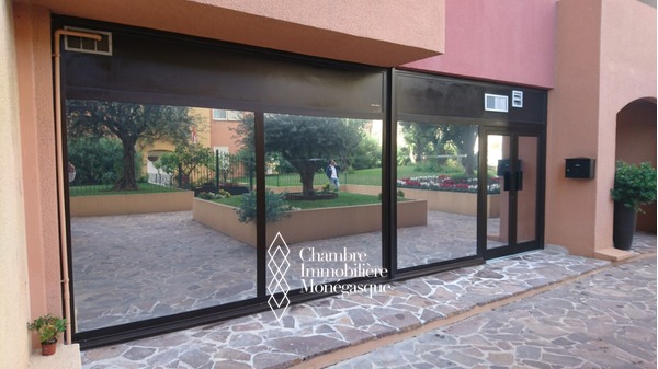 Dans le quartier du port de Fontvieille, ce grand bureau de 63m2 donnant sur les jardins de la résidence est un idéal espace de travail au calme