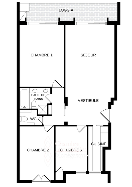 Il se compose de trois chambres, d’une salle de bains, d’un WC invités, d’une cuisine fonctionnelle, d’un salon lumineux, d’un vestibule accueillant ainsi que d’une loggia.