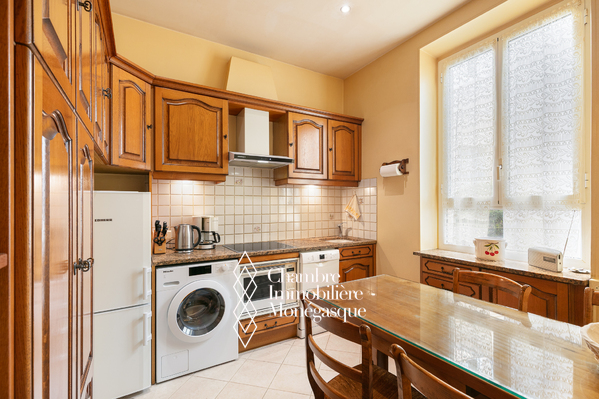 L’espace intérieur se compose d’un hall d’entrée avec placard, d’une cuisine indépendante équipée avec fenêtre, de toilettes invités avec fenêtre, de trois chambres, d’une salle de douche, ainsi que d’un séjour lumineux constituant un véritable espace de vie convivial.
