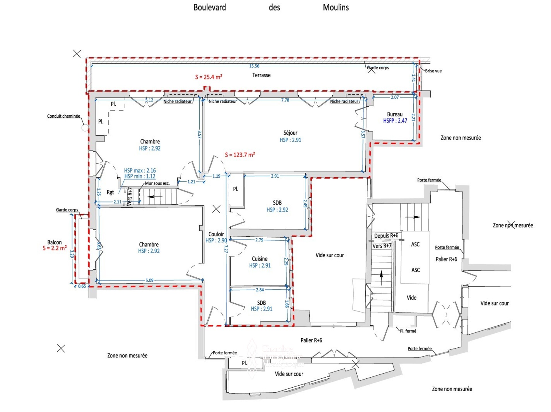 Situé aux 6ᵉ et 7ᵉ étages d’un immeuble bourgeois, ce rare duplex penthouse offre un fort potentiel grâce à sa configuration et à ses volumes généreux.
