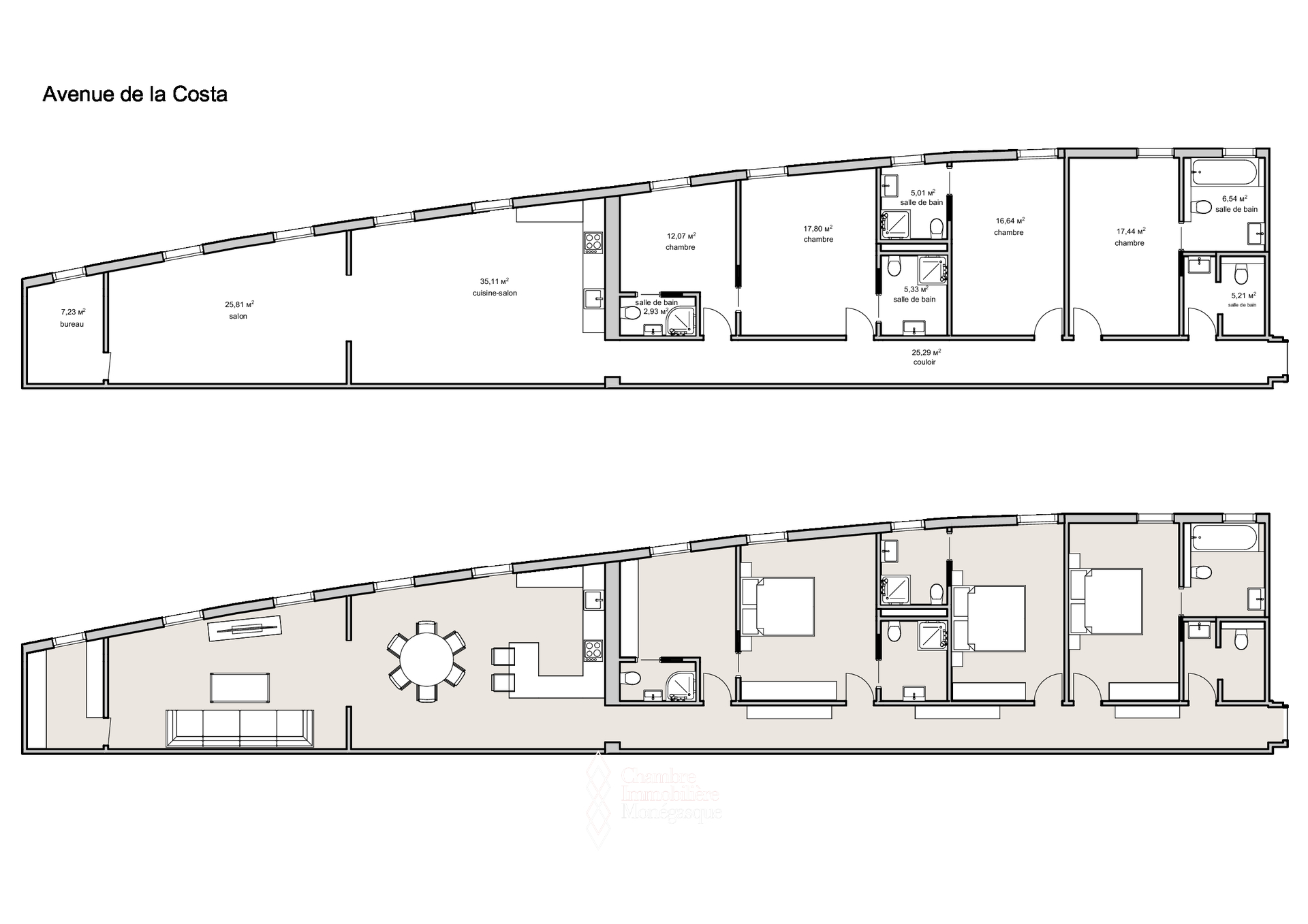 D’une superficie totale de 185 m², ce bien à usage mixte, soumis à la loi 887, bénéficie d’une très belle luminosité ainsi que d’une vue dégagée sur le Port Hercule.