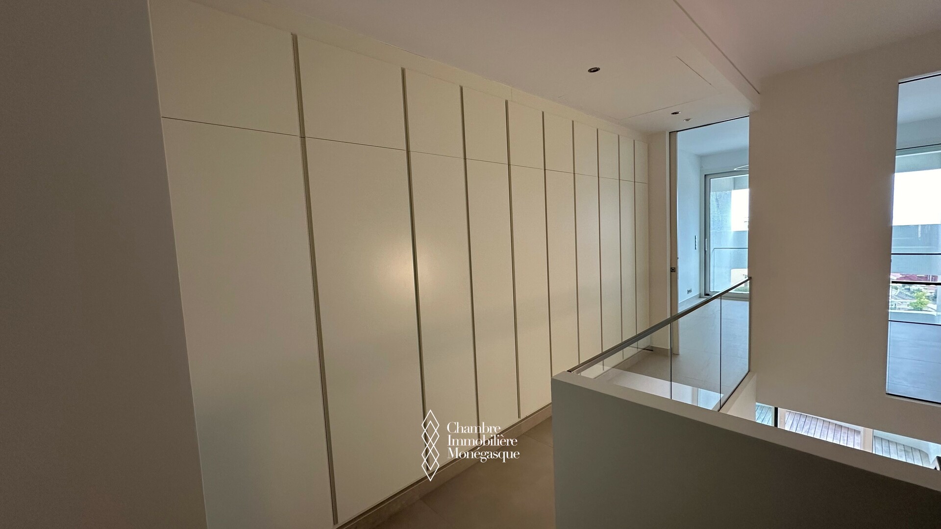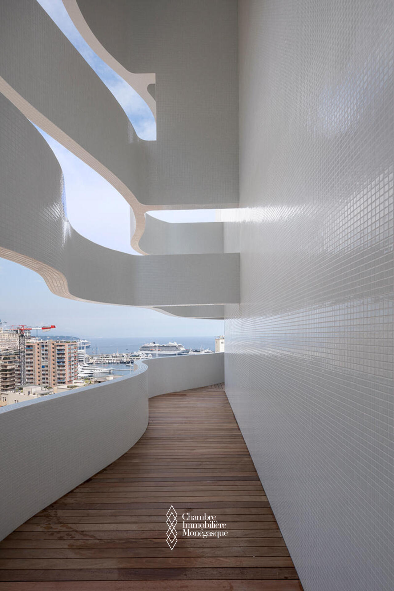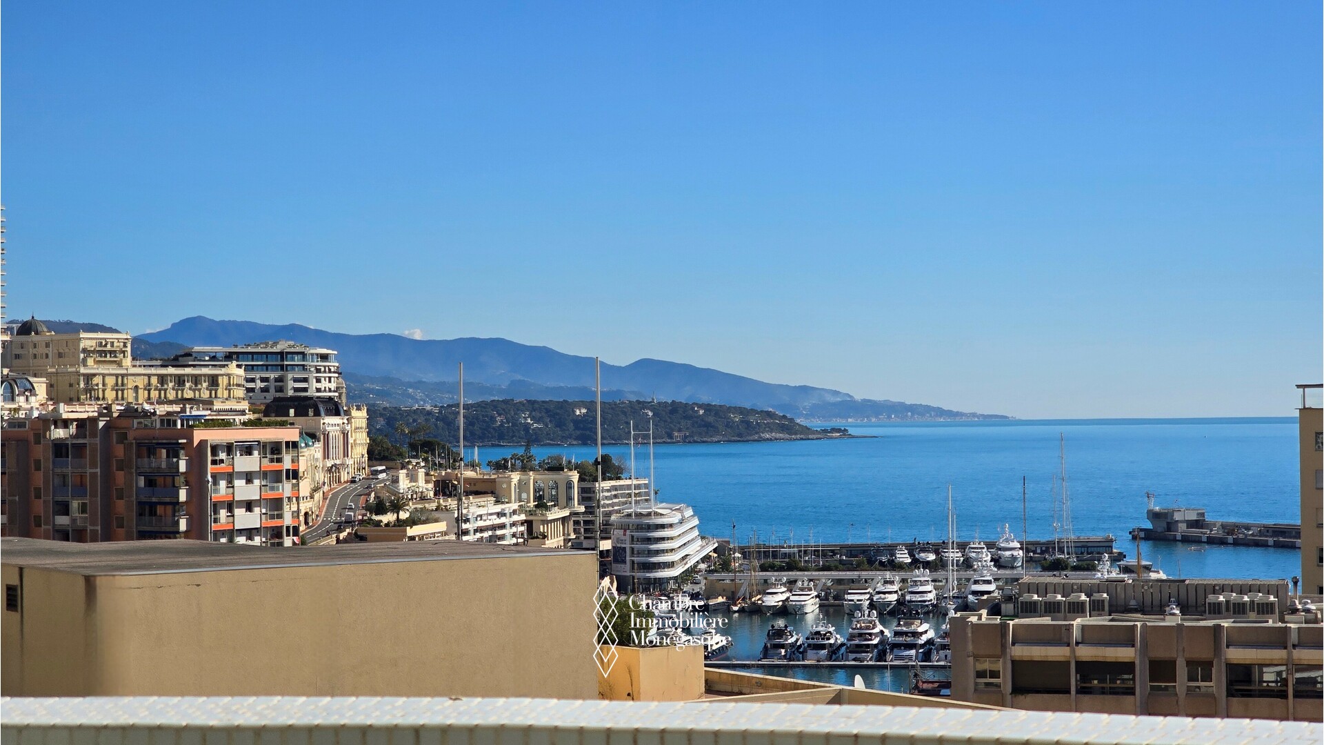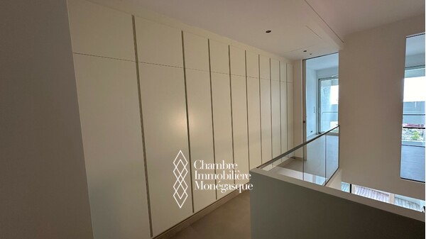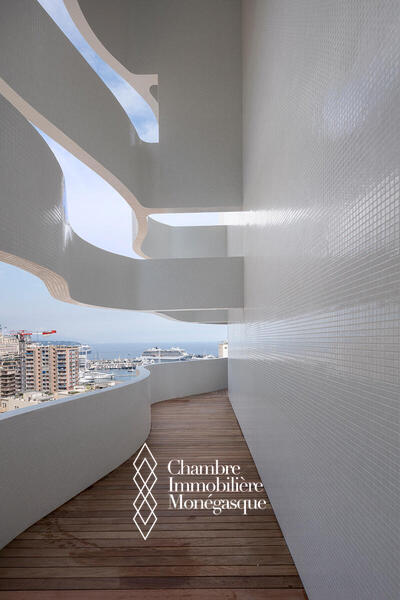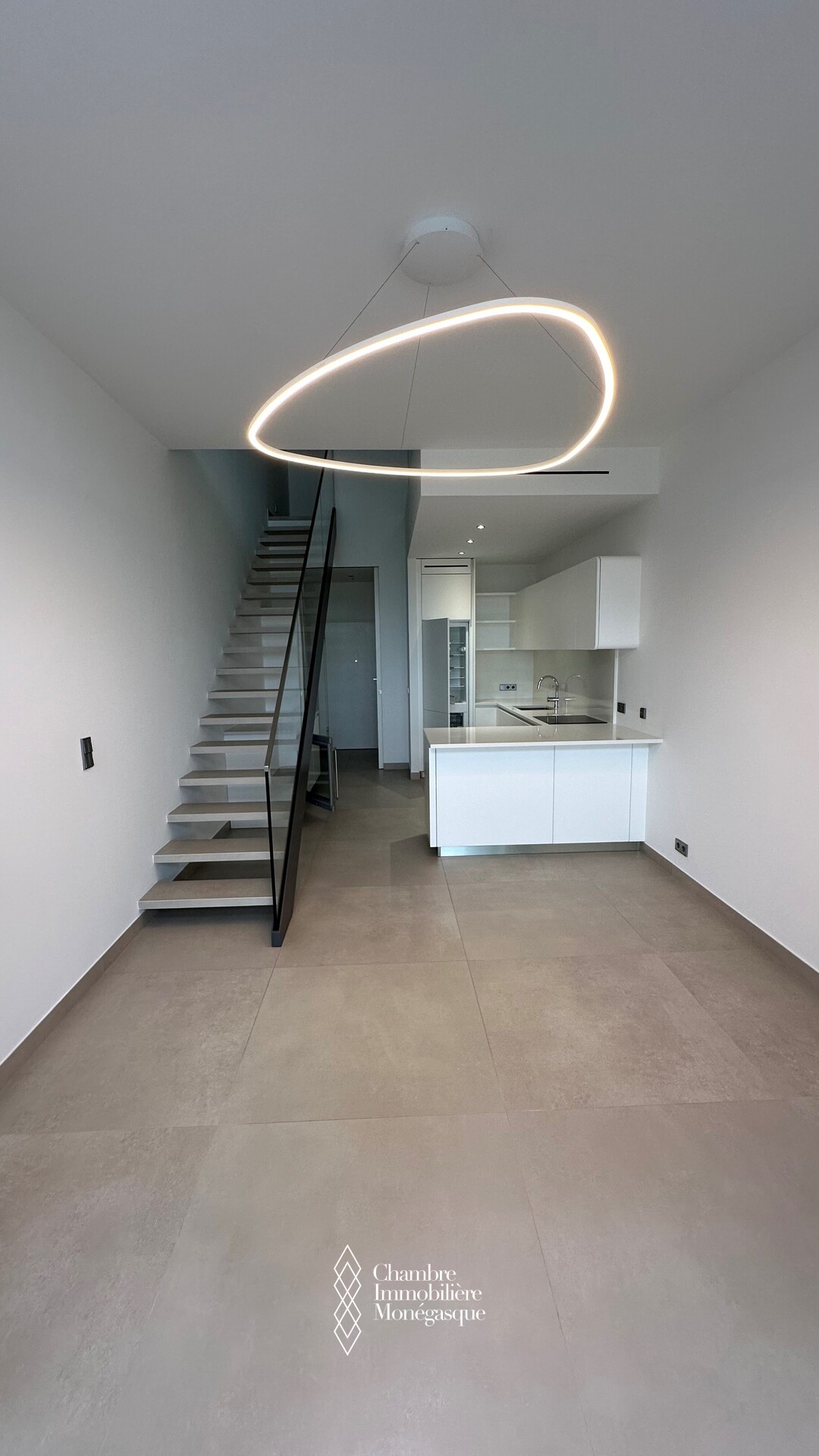 Dans le quartier de la Condamine, dans un immeuble de standing 'Le Stella', beau 2P en duplex d'une superficie totale de 91 m², composé d'une entrée avec toilettes invités, une cuisine équipée, séjour avec terrasse.