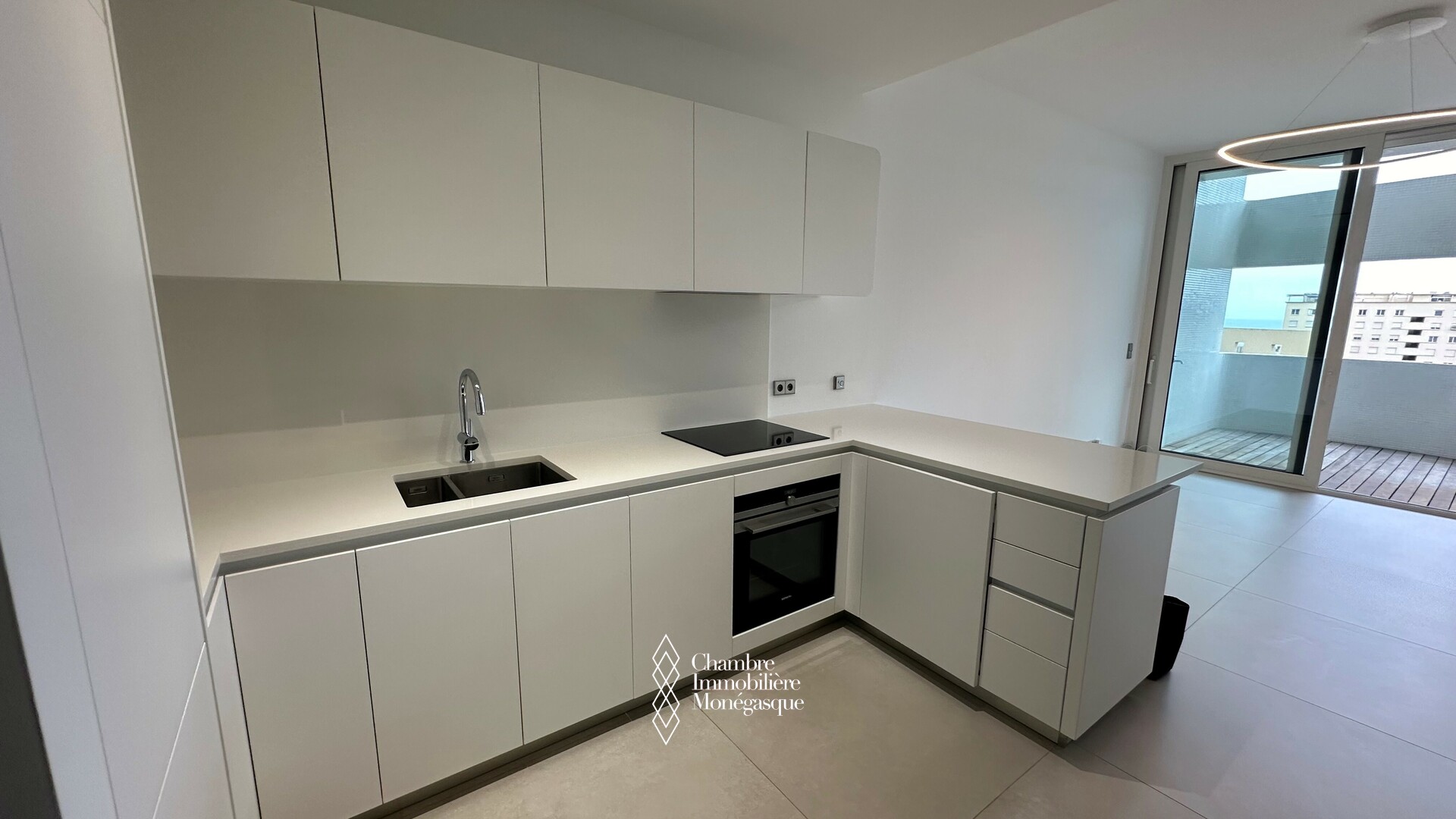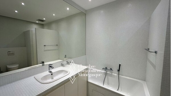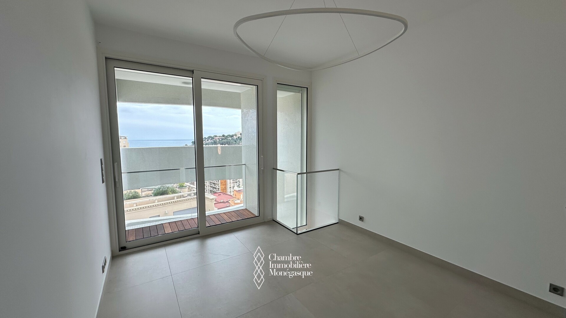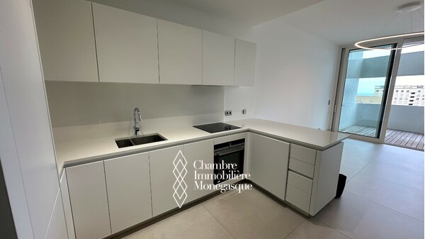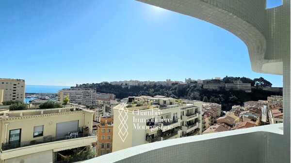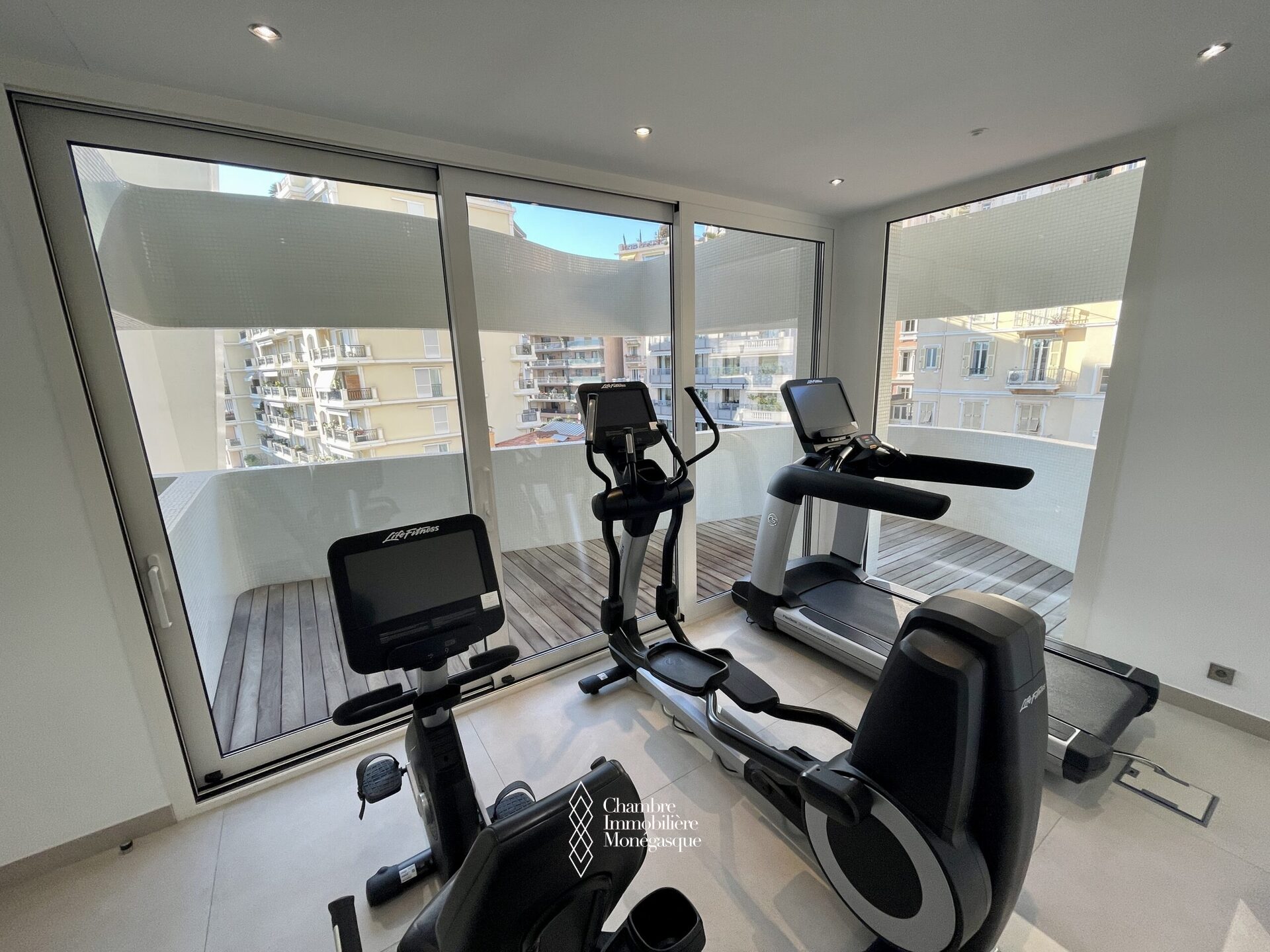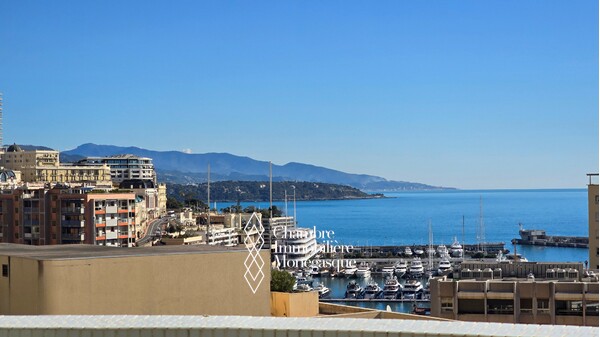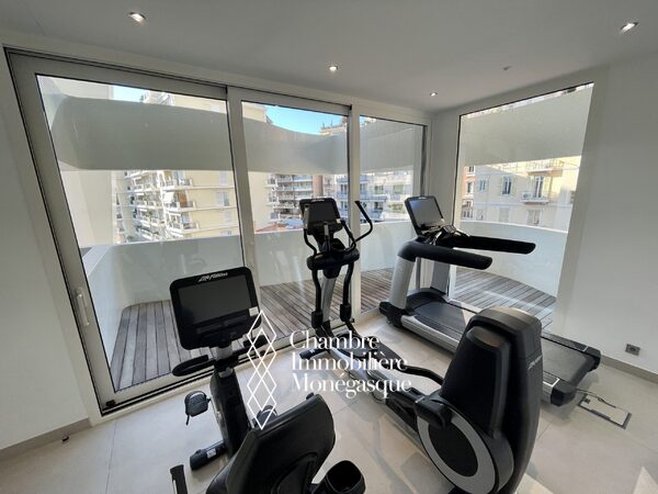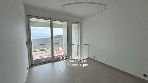 Dans le quartier de la Condamine, dans un immeuble de standing 'Le Stella', beau 2P en duplex d'une superficie totale de 91 m², composé d'une entrée avec toilettes invités, une cuisine équipée, séjour avec terrasse.