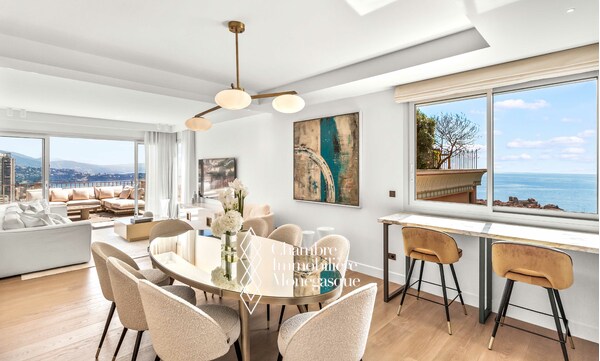 Dans les hauteurs de la Principauté et situé dans un quartier apprécié pour sa tranquillité et facilité d'accès, cet appartement de 5 pièces a été entièrement rénové et meublé avec des matériaux de très grande qualité.