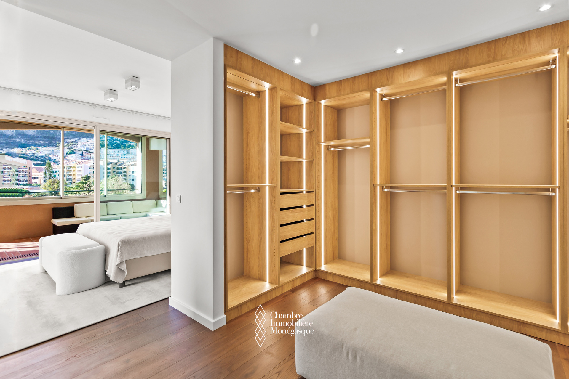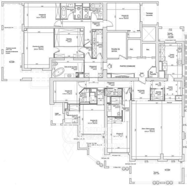 Avec une surface habitable de 426 m², l’appartement propose six suites complètes, chacune avec salle de bain, dressing et accès à un balcon privatif. Le vaste double séjour plein sud, baigné de lumière tout au long de la journée, s’ouvre sur de larges baies vitrées face à la mer. Les loggias intégrées renforcent l’espace de vie tout en assurant une isolation phonique parfaite.