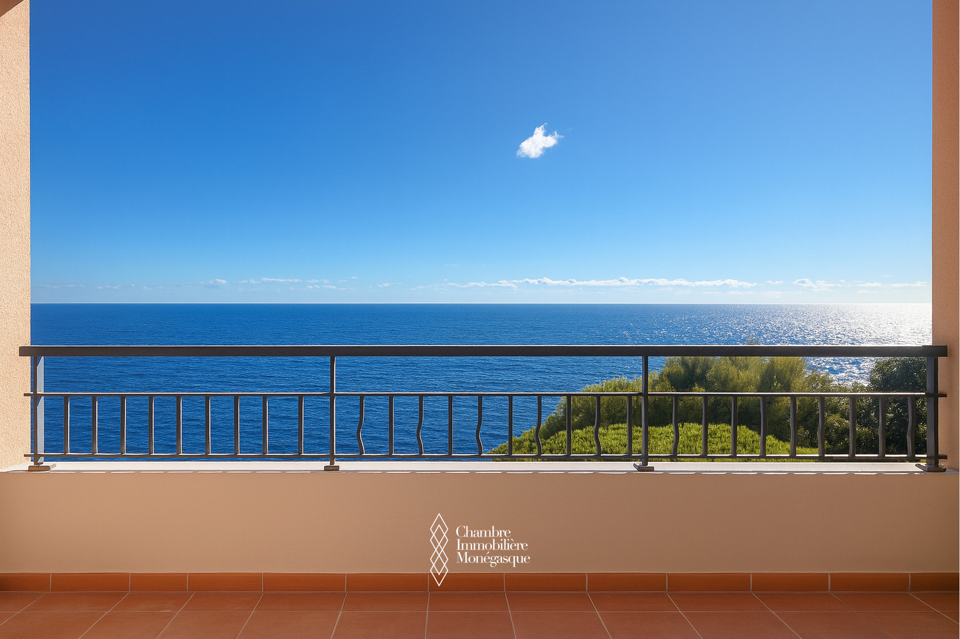 Le balcon principal, profond et aménageable, permet de recevoir ou de se détendre en toute intimité, sans aucun vis-à-vis, tout en profitant de vues imprenables sur la Méditerranée et les jardins en contrebas.