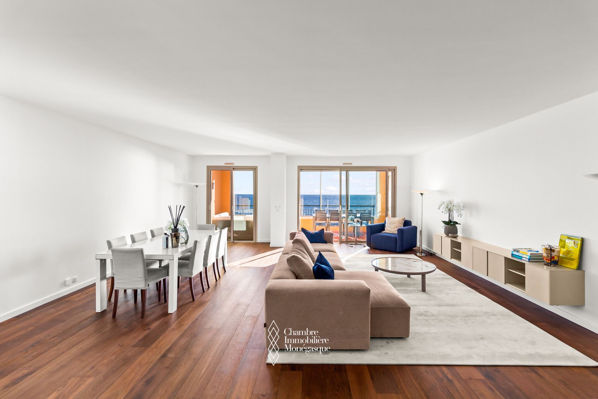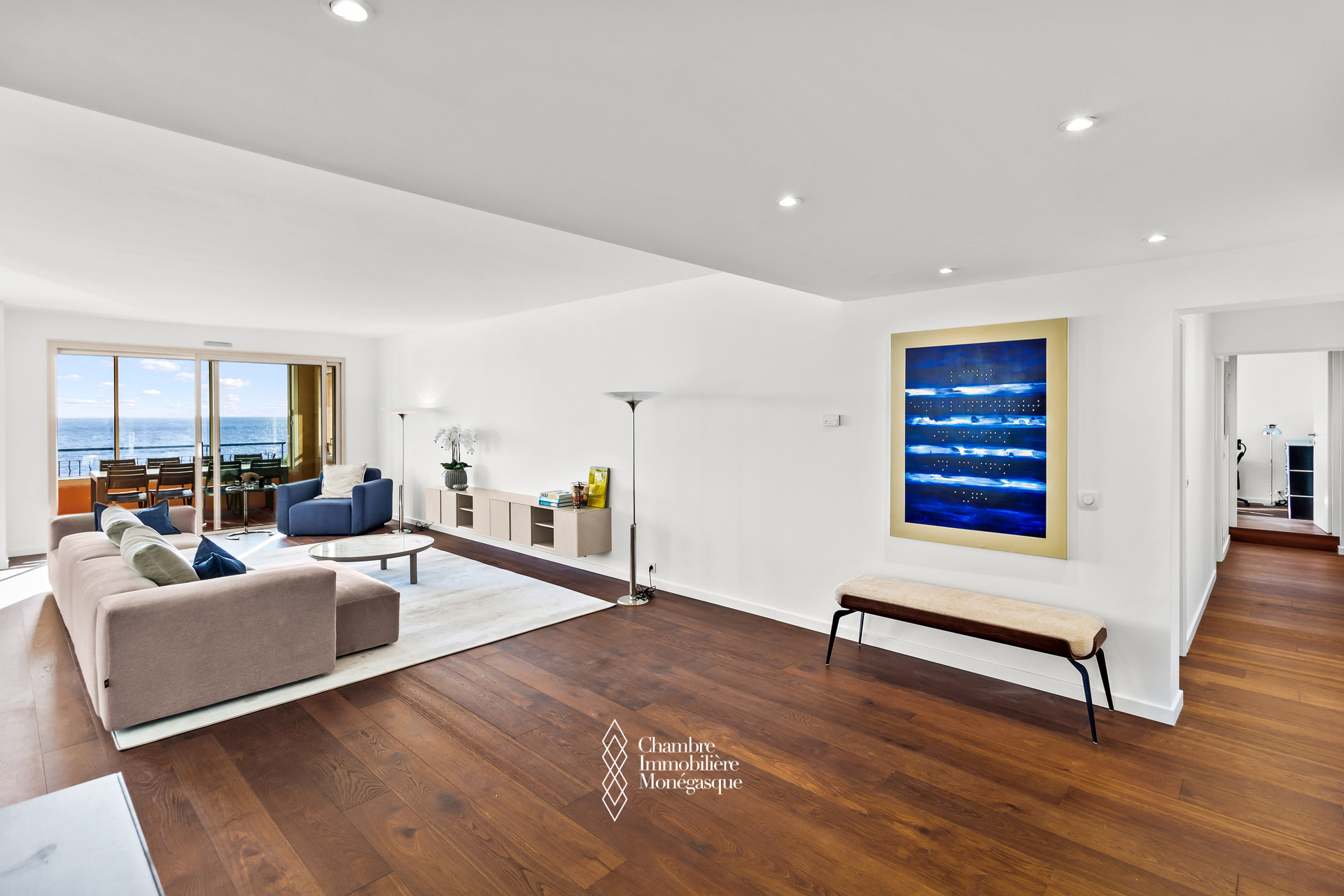 Avec une surface habitable de 426 m², l’appartement propose six suites complètes, chacune avec salle de bain, dressing et accès à un balcon privatif. Le vaste double séjour plein sud, baigné de lumière tout au long de la journée, s’ouvre sur de larges baies vitrées face à la mer. Les loggias intégrées renforcent l’espace de vie tout en assurant une isolation phonique parfaite.