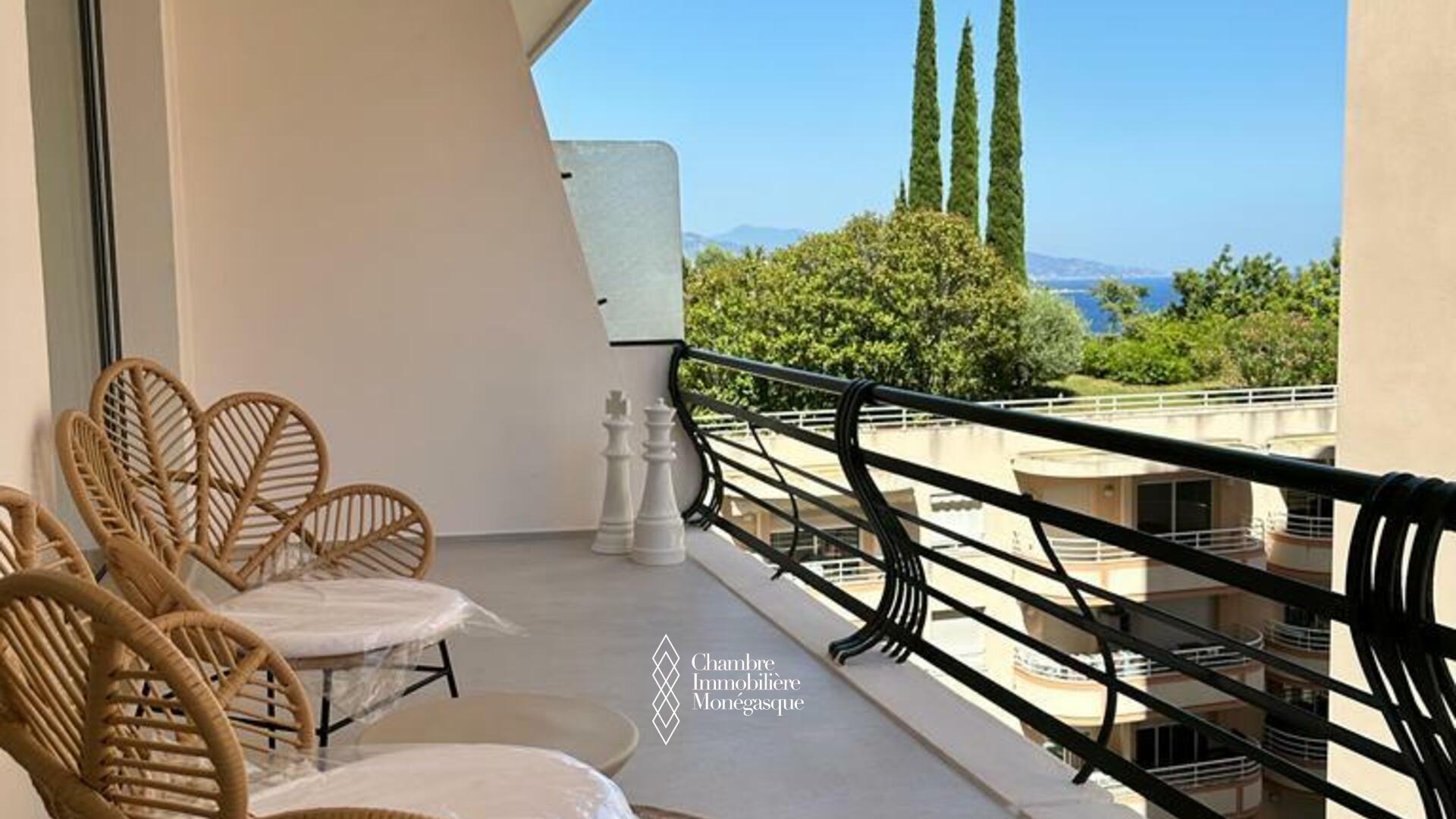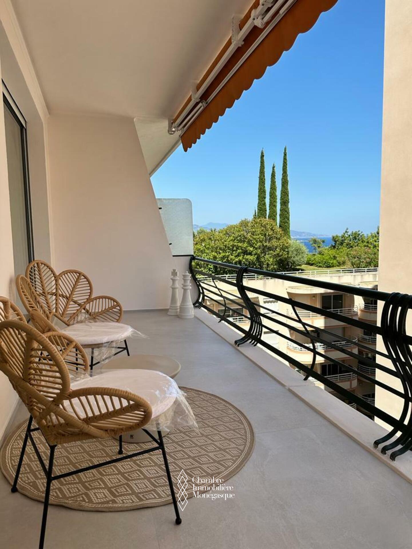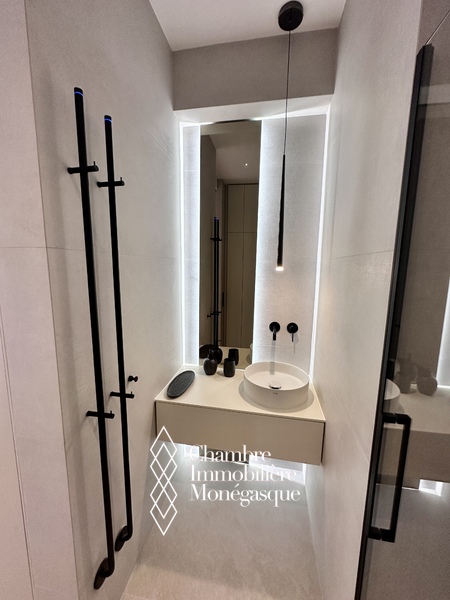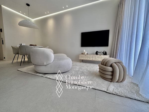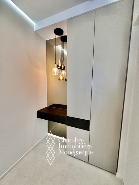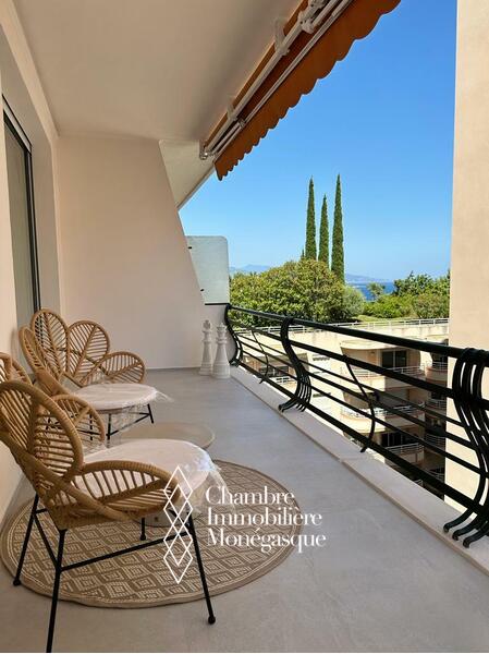 Le Plati - Dans une résidence moderne située à proximité de toutes les commodités et du Parc Princesse Antoinette, bel appartement luxueusement rénové. L'appartement lumineux et clame offre une jolie échappée mer. Idéal pour un couple, l'appartement se compose comme suit :