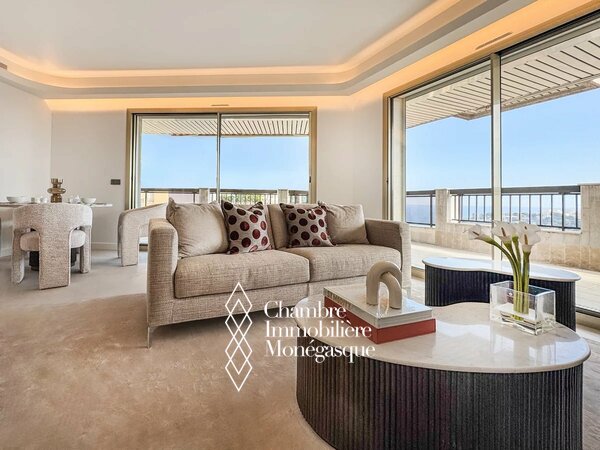 Niché dans une élégante rue, Beverly Palace est l’une des résidences de prestige de Monaco, offrant un cadre de vie raffiné avec un service de conciergerie attentif. Cet appartement impeccable a été entièrement rénové et meublé selon les plus hauts standards de luxe, créant un véritable home clé en main, où chaque détail a été soigneusement pensé. La propriété comprend deux chambres magnifiquement aménagées et trois salles de bains contemporaines, ainsi qu’une cuisine entièrement équipée alliant confort et style. Les espaces de vie lumineux et ouverts s’ouvrent sur une grande terrasse en angle, véritable point fort de la résidence. Depuis celle-ci, la vue panoramique s’étend sur le Port Hercule, les yachts scintillants et le célèbre Rocher de Monaco, offrant un spectacle époustouflant de jour comme de nuit. Avec ses vues exceptionnelles, ses finitions impeccables et son caractère prêt à emménager, cet appartement au Beverly Palace représente une opportunité rare de profiter du meilleur de Monaco dans le confort absolu et l’élégance.