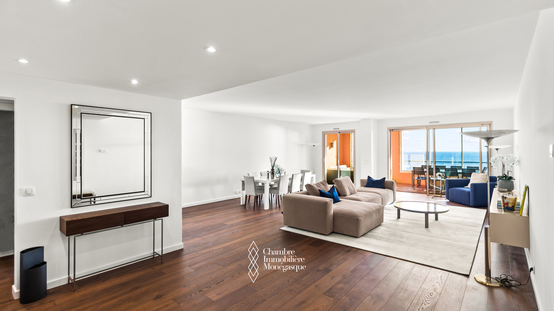 Avec une surface habitable de 426 m², l’appartement propose six suites complètes, chacune avec salle de bain, dressing et accès à un balcon privatif. Le vaste double séjour plein sud, baigné de lumière tout au long de la journée, s’ouvre sur de larges baies vitrées face à la mer. Les loggias intégrées renforcent l’espace de vie tout en assurant une isolation phonique parfaite.