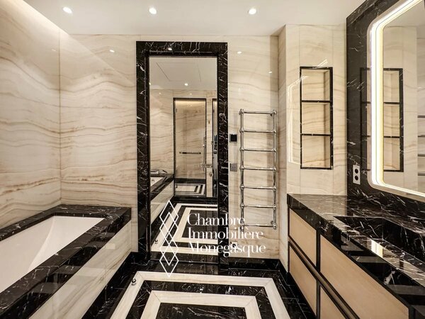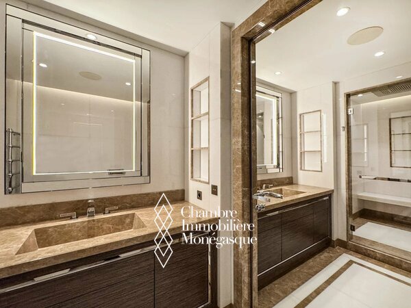 Bay House est une résidence de grand luxe qui établit un nouveau standard de vie raffinée à Monaco. Avec un service de conciergerie attentif, une salle de sport et un spa, l’immeuble offre aux résidents la parfaite combinaison de confort et de sophistication. Il bénéficie également d’un emplacement idéal, à proximité de l’École Internationale et de la plage du Larvotto. Cet appartement exceptionnel a été conçu selon les plus hauts standards, chaque espace témoignant d’une attention méticuleuse aux détails. Il propose un double salon avec salle à manger et trois belles chambres à coucher, chacune dotée de sa salle de bain privative, dont deux disposent de vastes dressings. La cuisine entièrement équipée allie fonctionnalité moderne et style raffiné, tandis que la grande terrasse constitue un espace idéal pour se détendre ou recevoir des invités.