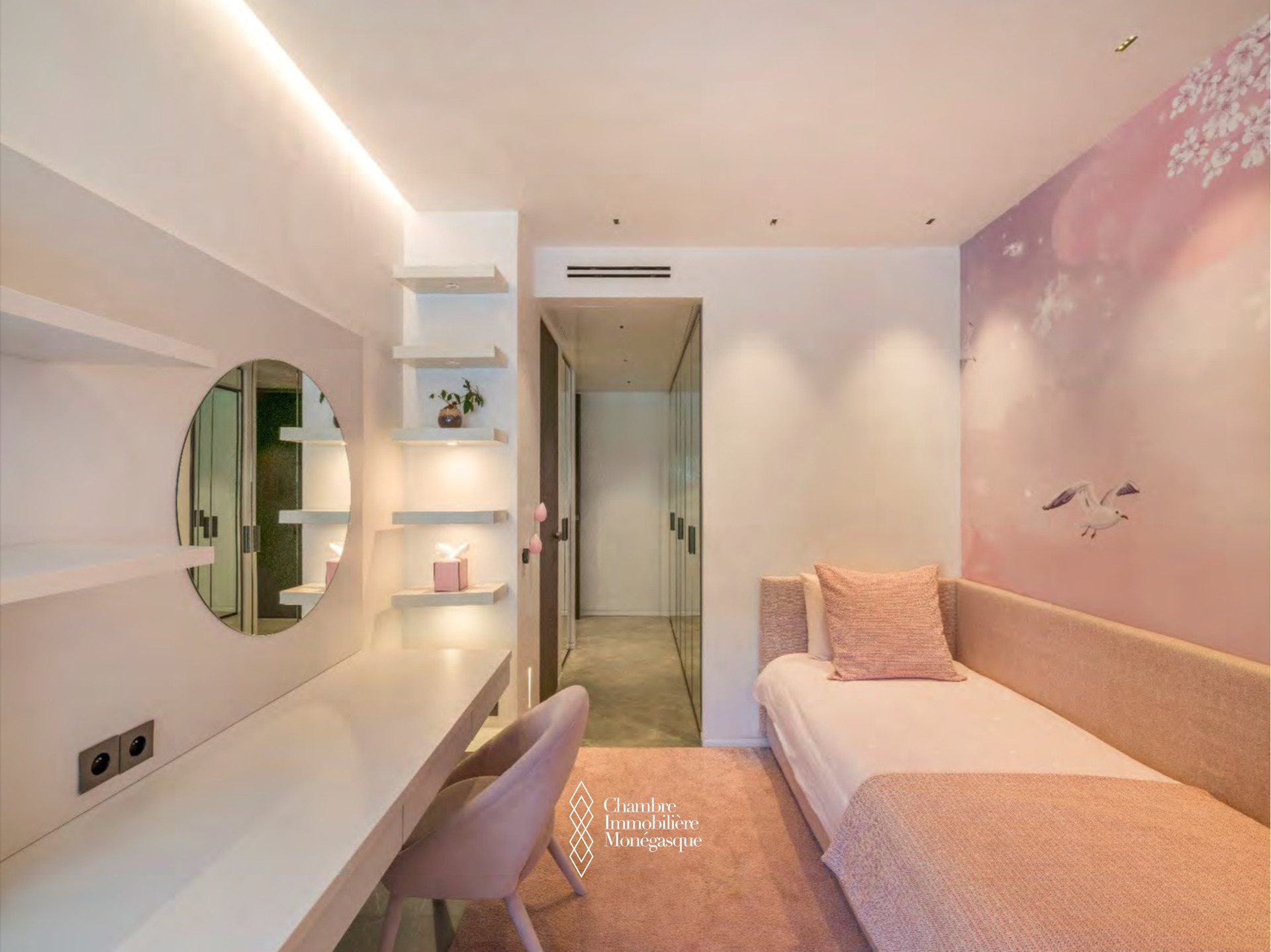 Appartement somptueux et spacieux occupant un étage entier d'un immeuble moderne et exceptionnel, situé dans un quartier calme et résidentiel. Considéré comme l'un des plus beaux immeubles de la Principauté, ce bien emblématique a été conçu par le célèbre architecte Jean-Michel Wilmotte.
