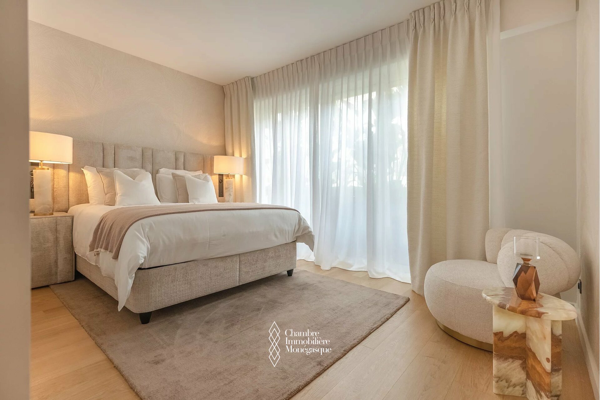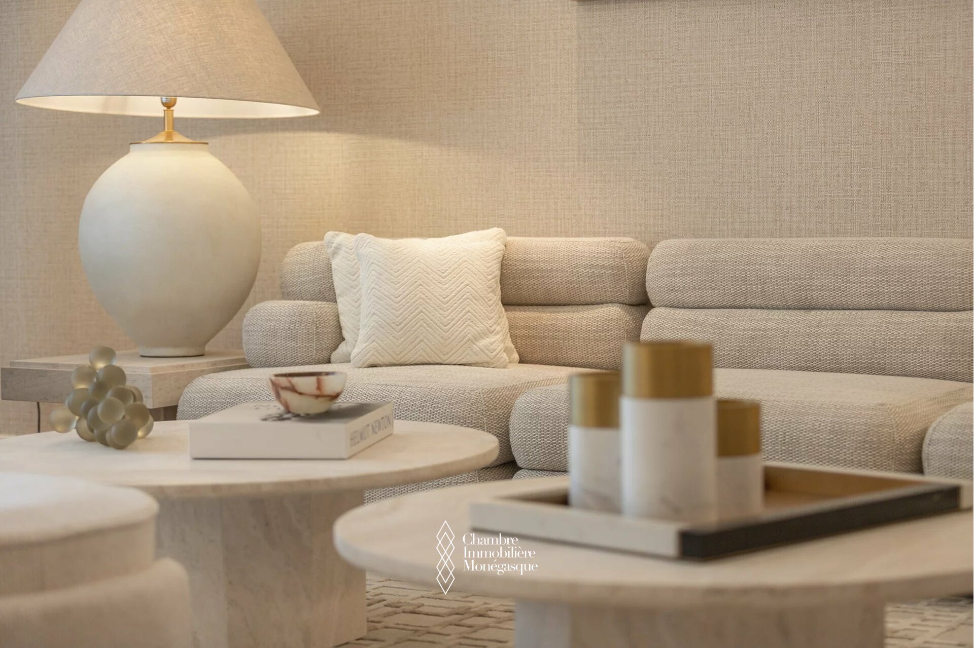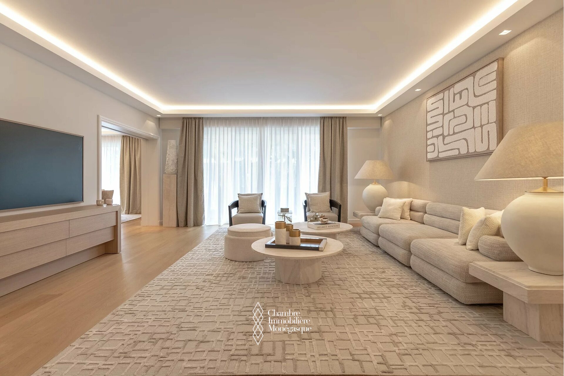 Nichée dans un environnement privilégié, la résidence Les Villas del Sole bénéficie d’un service de conciergerie disponible en continu, 24h/24 et 7j/7. Un somptueux espace piscine situé sur le toit-terrasse vient parfaire l’ensemble, offrant un cadre de détente raffiné avec vue panoramique sur la Principauté. L’emplacement est tout simplement exceptionnel. À quelques pas seulement, vous accédez aisément au prestigieux Monte-Carlo Country Club, aux plages emblématiques du Larvotto, ainsi qu’à la nouvelle école internationale, faisant de ce bien une adresse idéale. Situé en dernier étage, cet appartement remarquable de 5 à 6 pièces occupe l’intégralité du plateau, développant une surface intérieure de 460 m², à laquelle s’ajoutent de généreux espaces extérieurs. Dès l’entrée, la luminosité omniprésente et la fluidité des volumes rendent cet appartement unique. L’appartement a fait l’objet d’une rénovation intégrale menée avec un soin extrême, où chaque détail a été pensé pour conjuguer esthétique contemporaine et fonctionnalité. Il est proposé entièrement meublé, avec un ameublement de haute facture alliant lignes épurées et matériaux nobles. La décoration, résolument moderne et raffinée, s’articule autour d’une palette de tons beiges et naturels, qui insufflent aux lieux une élégance apaisante et intemporelle. Le parquet en chêne massif, présent dans toutes les pièces, confère une ambiance chaleureuse et feutrée. Les volumes, particulièrement généreux, créent une sensation de vie en villa, rare en milieu urbain. Les espaces de réception sont vastes et baignés de lumière naturelle, tandis que les chambres, spacieuses et parfaitement agencées, offrent calme et intimité. L’appartement dispose également de nombreux rangements sur mesure, conçus pour optimiser le confort au quotidien.