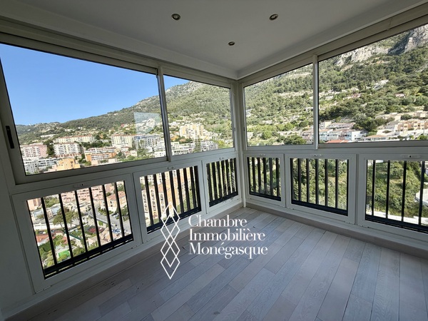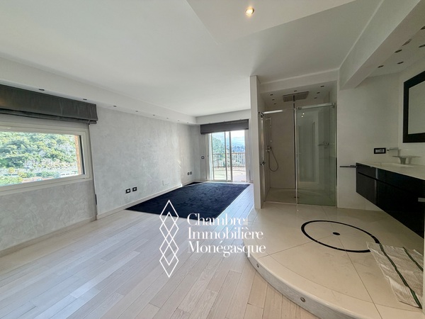D'une superficie totale de 230 m2, il se compose : d'une entrée, un toilette invités, un grand double séjour ouvrant sur terrasse fermée type véranda disposant d'une vue panoramique sur la mer et la Principauté de Monaco, une cuisine entièrement équipée. Des escaliers mènent à l'étage supérieur où l'on peut trouver, une entrée de service avec un petit espace buanderie, disposant de nombreux placards de rangement, une première chambre avec salle de douche, une seconde présentant deux parties une principale et une ancienne terrasse clôturée , avec salle de douche et la troisième chambre, celle de maître, avec dressing, salle de douche, ouvrant sur une terrasse ouverte avec vue panoramique.