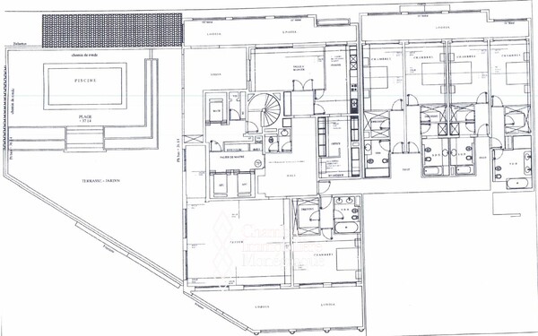 La partie nuit comprend quatre chambres supplémentaires, chacune avec sa salle de bains et son dressing, ouvrant sur une loggia commune. L’ensemble propose une distribution cohérente, adaptée à un usage familial ou de réception.
