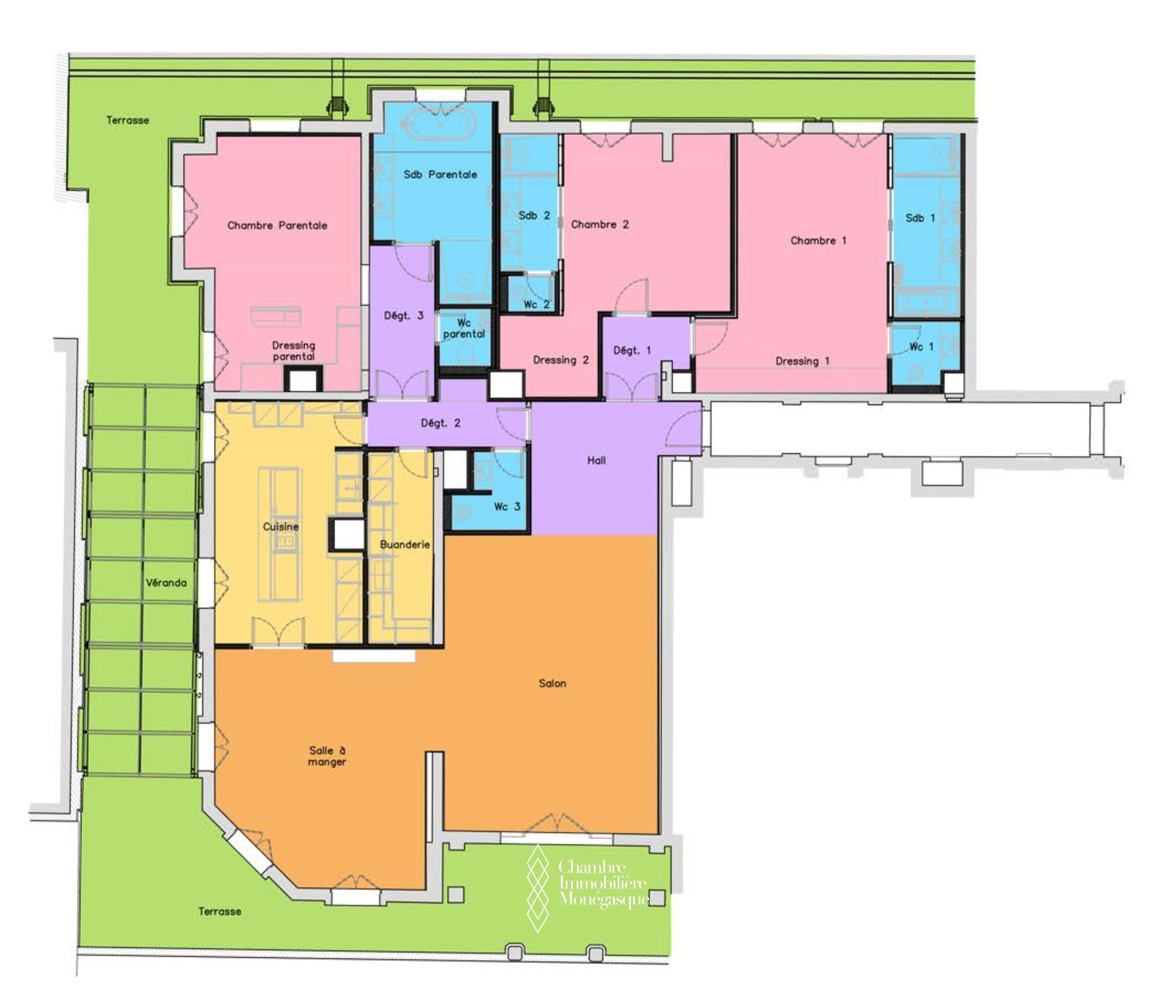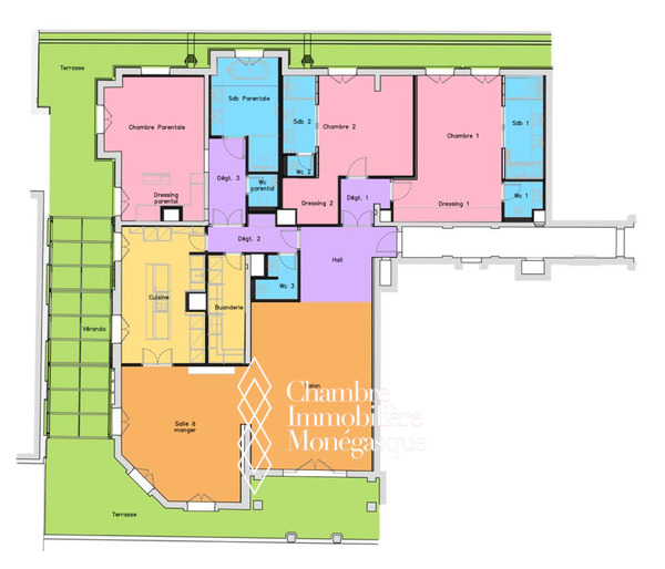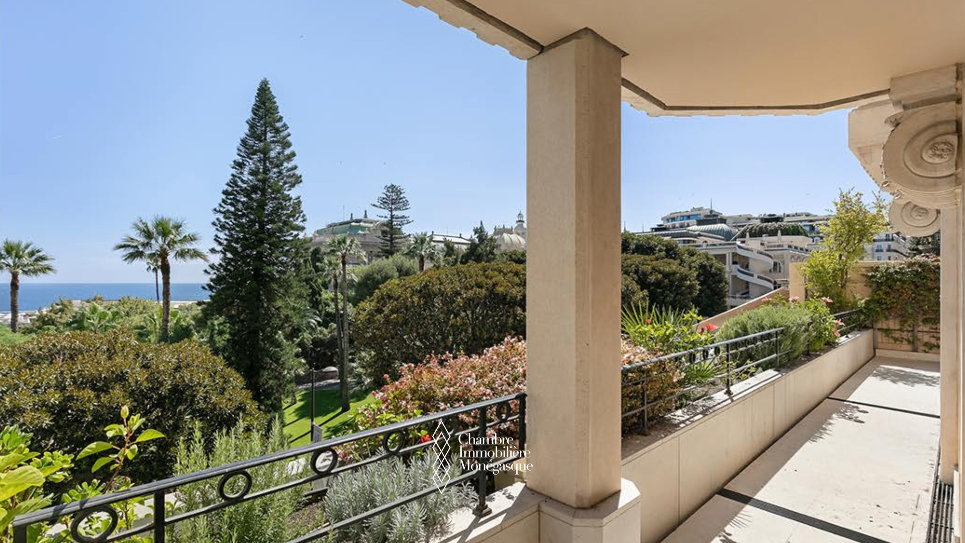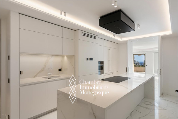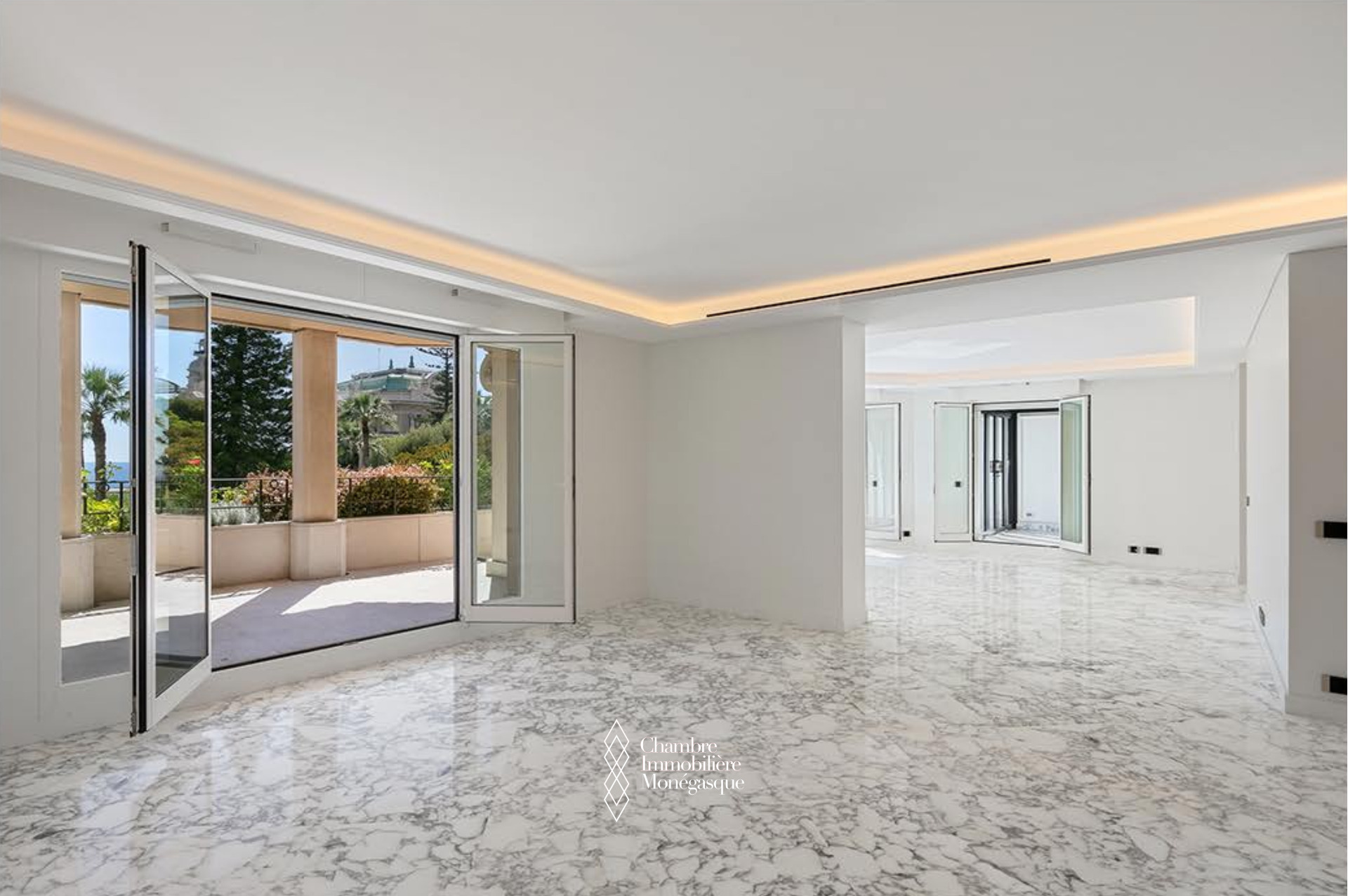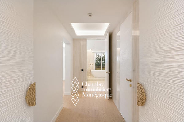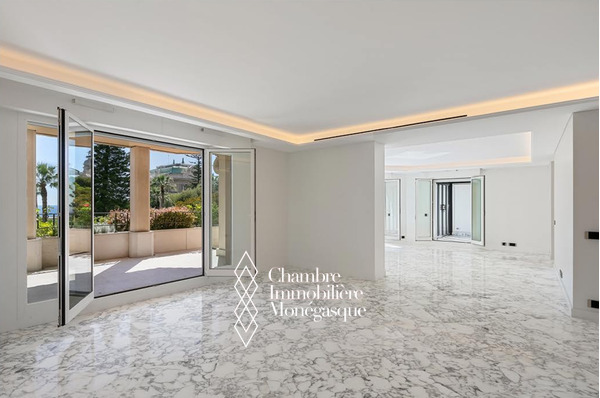 Il offre un vaste séjour baigné de lumière, aménagé en deux espaces distincts, s’ouvrant sur une terrasse avec une vue imprenable sur le Casino. Un élégant jardin d’hiver avec cheminée, prolongé lui aussi par une terrasse, vient sublimer cet espace de vie rare.