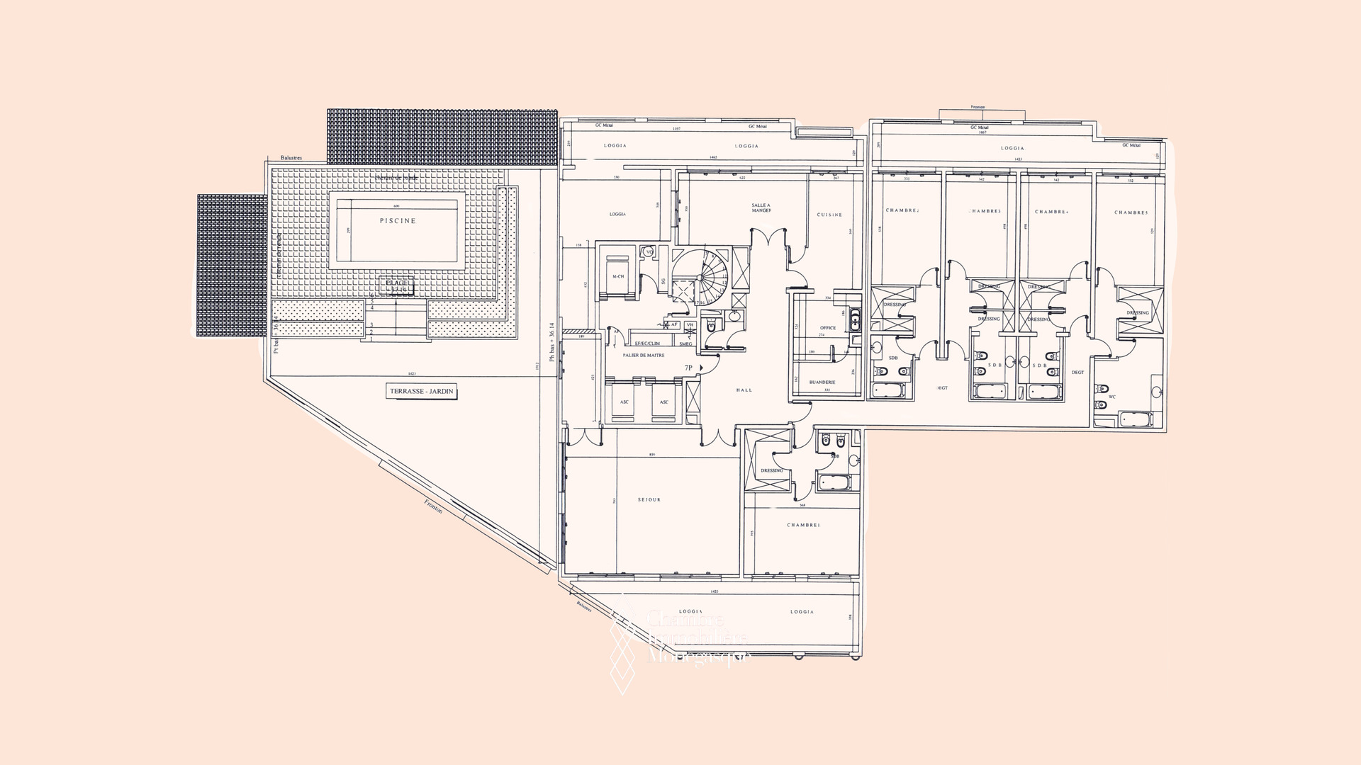 - Terrasses/Loggias : Une vaste terrasse avec piscine privative invite à des moments de détente exclusifs.