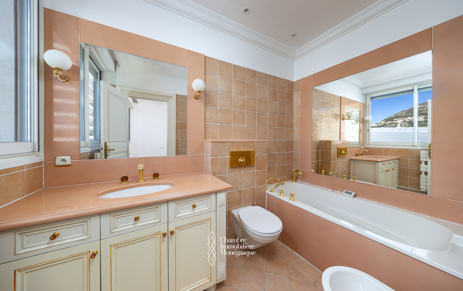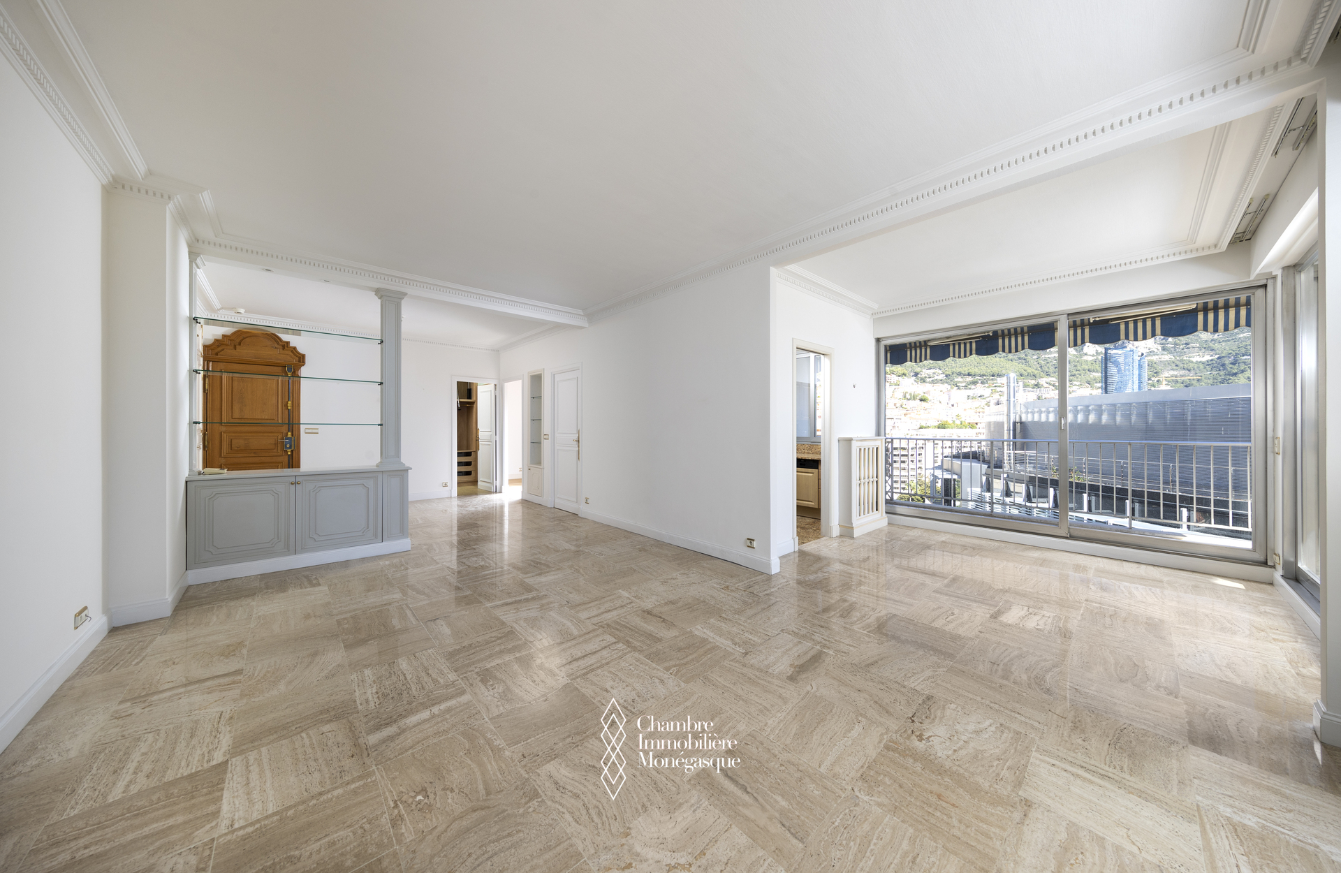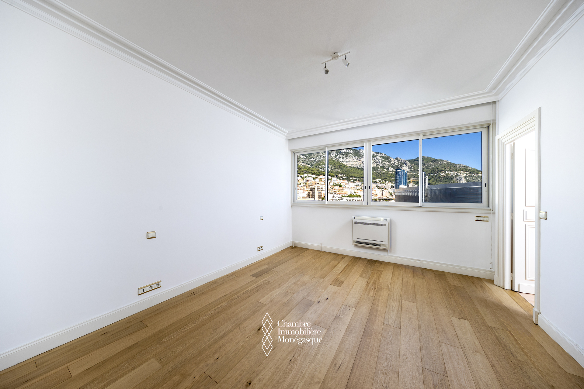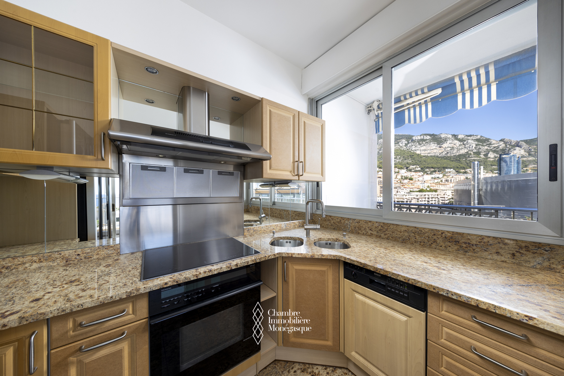 Carré d'Or - Le Sun Tower - 2 pièces Dans un immeuble de standing du Carré d'Or, Bel appartement de 2 pièces situé au 11ème étage. Vue panoramique sur la mer, le port et le rocher de Monaco. Surface totale de 108m². L'appartement se compose de : - Un hall d'entrée, - Un séjour/salle à manger ouvrant sur terrasse, Une chambre avec salle de bain complète, dressing, - Une cuisine équipée, Terrasse Circulaire.  Climatisation. Exposition Sud Ouest.