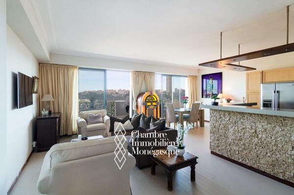 3/4 room apartment, for mixed use, consisting of an entrance hall with guest toilet, a large living/dining room with open kitchen, 2 bedrooms with en-suite bathroom/showers, an additional room that can be used as an office or a 3rd bedroom. All rooms have access to one of the 3 terraces of the apartment offering a nice view of the port, the palace and the sea.