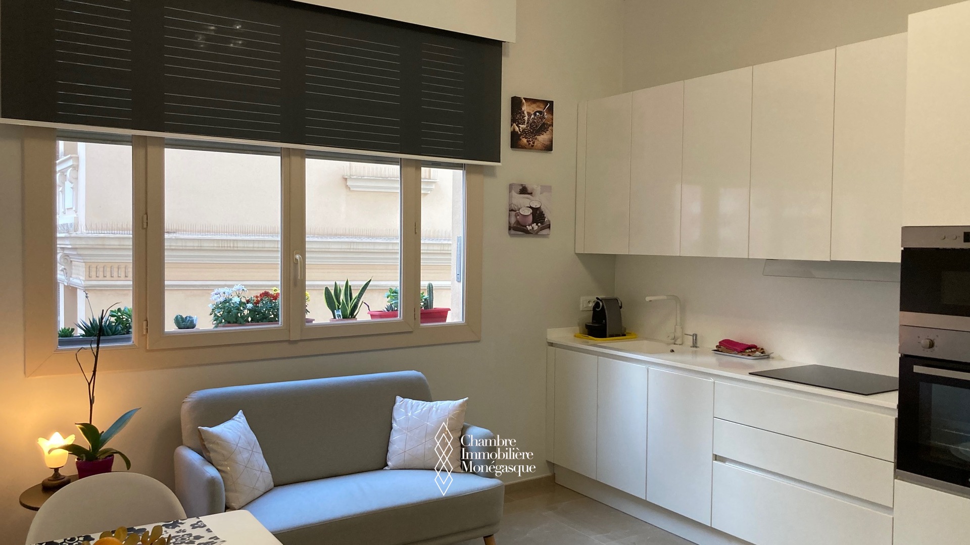 Joli 2 pièces de 45 m², entièrement rénové et sublimé par un mobilier raffiné et des prestations haut de gamme. Ce bien d'exception se compose d'une entrée spacieuse, d'un dégagement ouvrant sur un séjour baigné de lumière avec une cuisine ouverte, d'une chambre confortable, d'une salle d'eau contemporaine, d'un dressing et de toilette indépendante. Niché au sein d'une résidence bourgeoise sécurisée, dotée d'un ascenseur. Profitez en toute quiétude de ce bien, grâce à situation dans une rue en impasse ou l'on peut aussi s'y garer gratuitement. Proche des commerces dont le Super U, des bus à 50m, et des plages grâce à l'ascenseur public vers le Larvotto à 100m. Peu de copropriétaires donc peu de charges avec un gardien à demeure.
