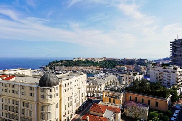 À seulement quelques minutes à pied de la Place du Casino et de ses boutiques de luxe, restaurants et hôtels. En plein cœur  de Monaco Carré d'Or, un beau trois pièces traversant de 117 M², entièrement rénové, composé de deux chambres, chacune avec salle de bains et dressing. Une chambre avec balcon. Belle cuisine ouverte sur le séjour, donnant sur une terrasse avec une vue magnifique. Cave et parking complètent ce bien.
