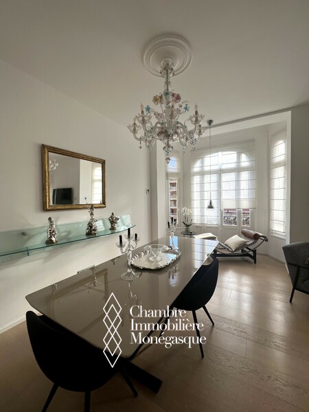 Spacieux 5 pièces au sein d'une résidence bourgeoise avec concierge situé dans un quartier résidentiel proche de tous commerces et des plages du Larvotto. Jouissant d'une belle luminosité et d'une surface totale de 150 m2, il se compose de : hall d'entrée, double séjour avec bow-window et balcon, accès direct à la cuisine équipée, buanderie indépendante, toilettes invités, une chambre de maître en façade avec balcon, placards et salle de bains, une chambre en façade avec balcon, placard et salle de douche, une chambre latérale avec salle de bains. Une cave complète ce bien.