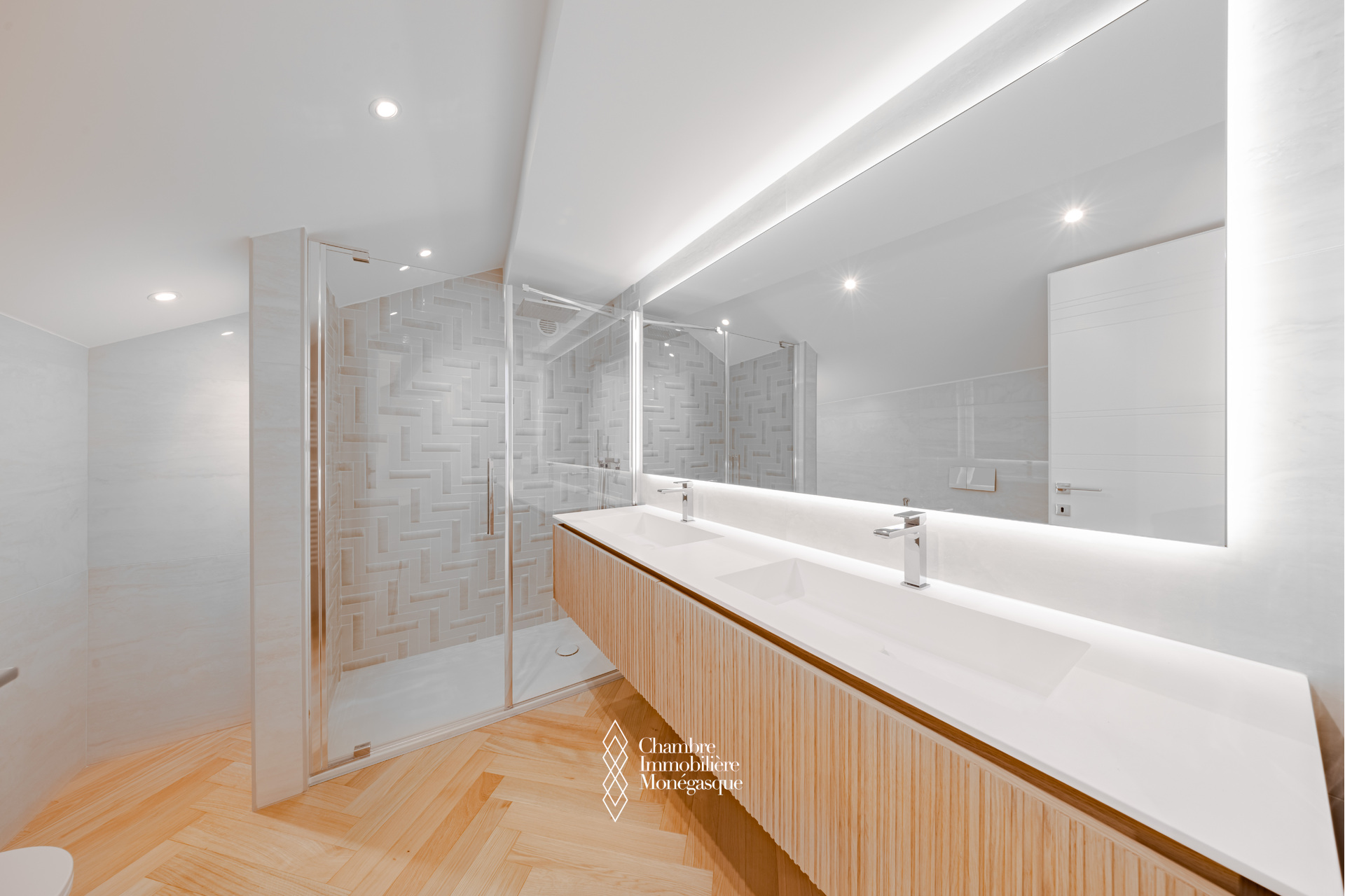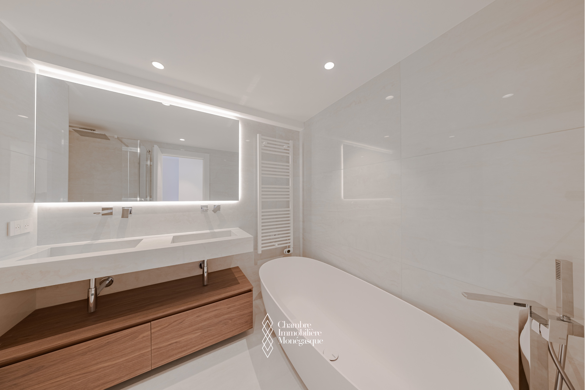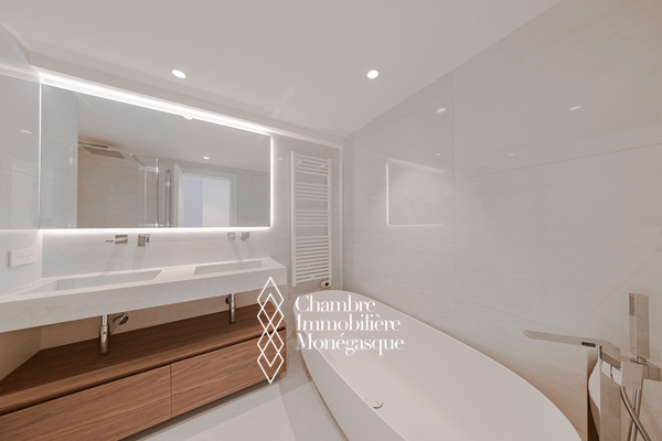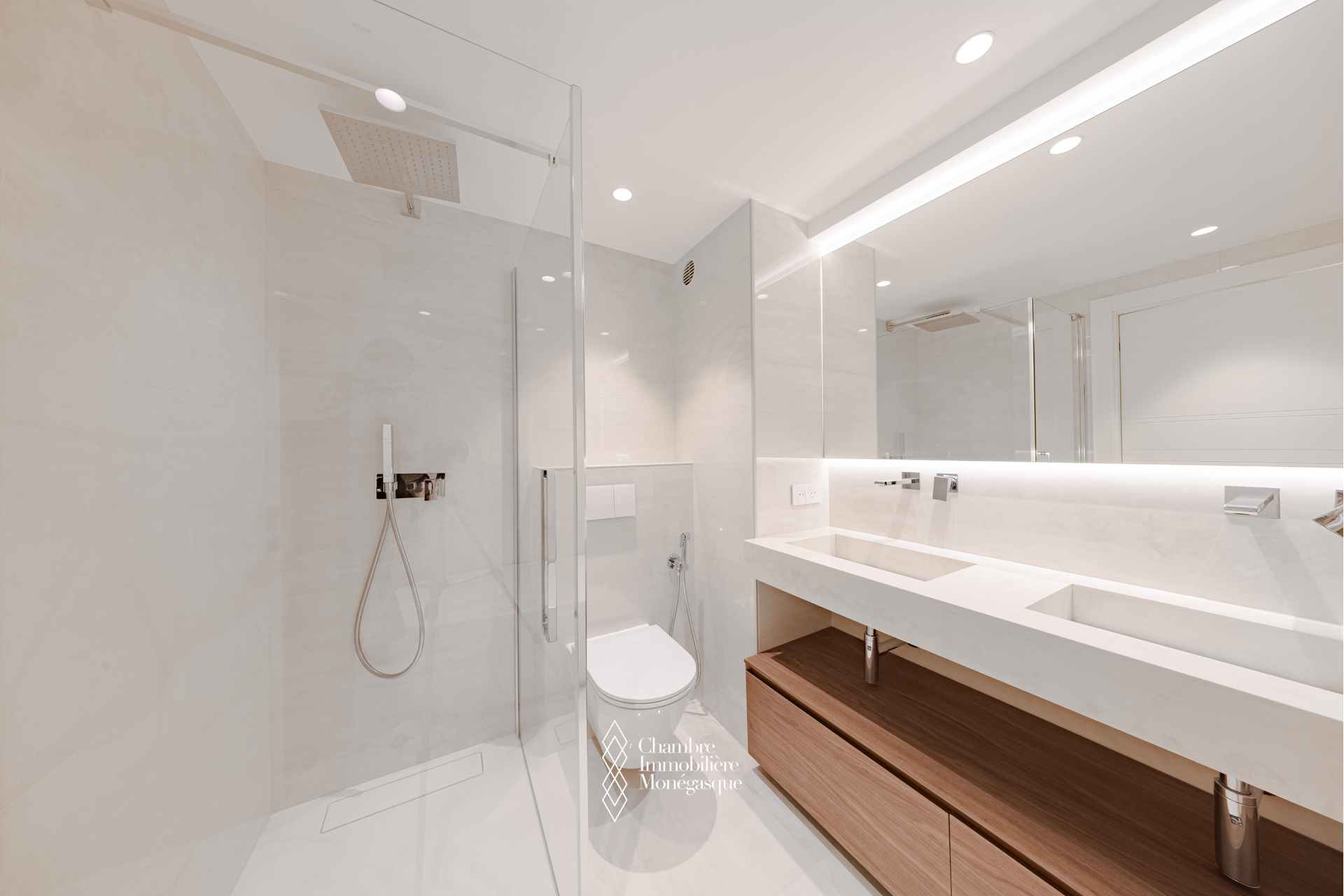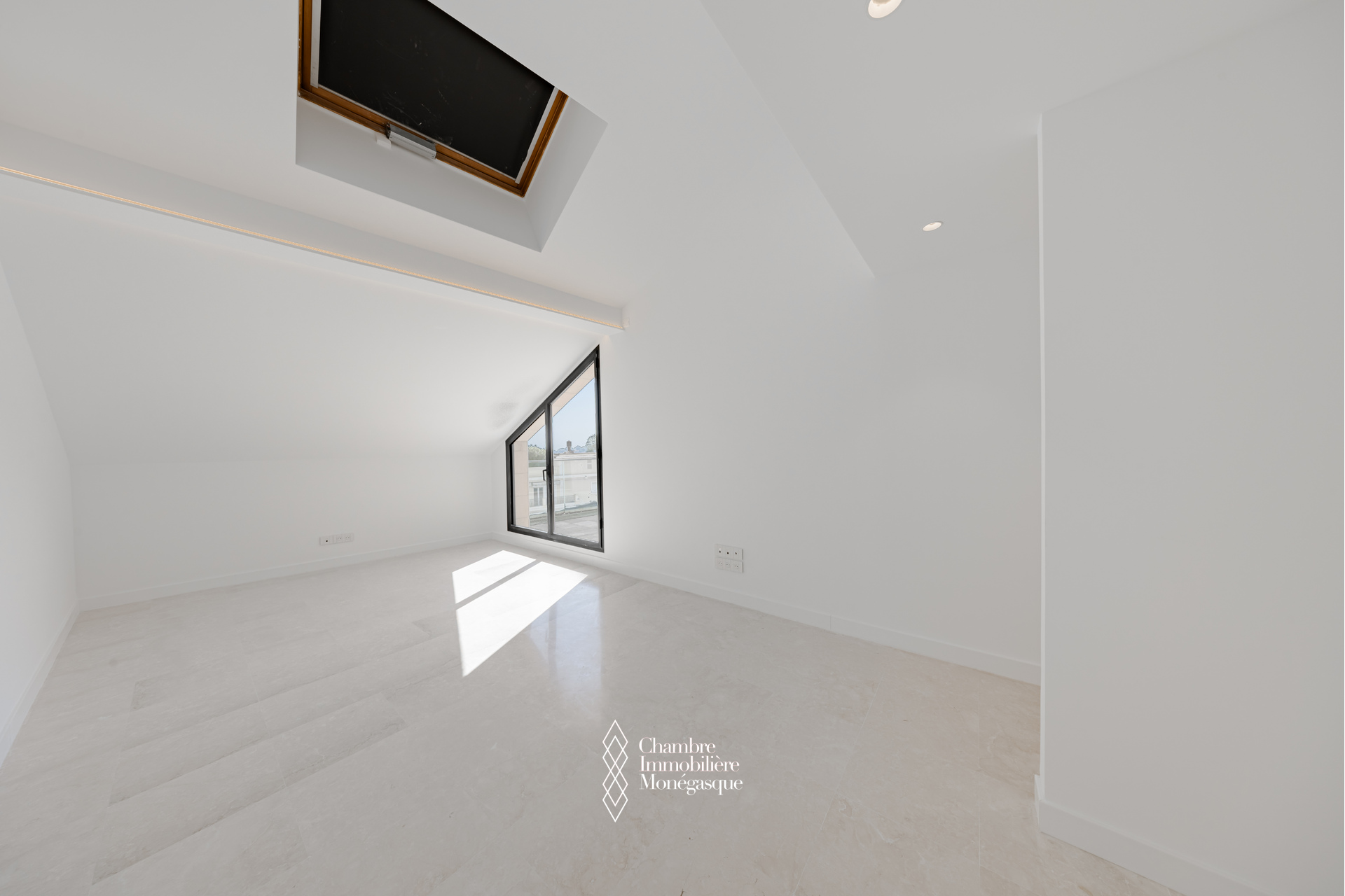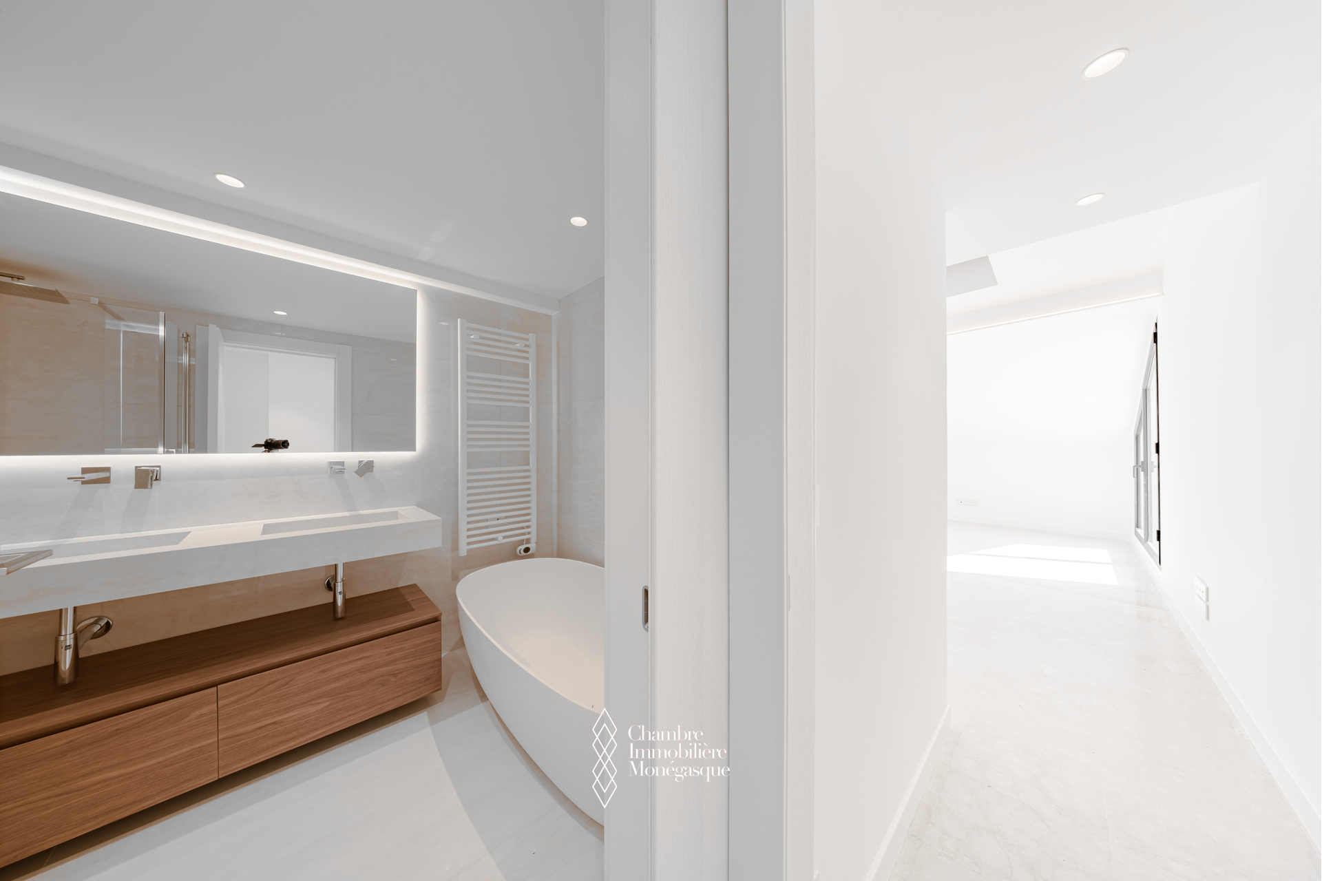 Magnifico appartamento completamente ristrutturato con materiali di pregio, composto da 3 camere da letto con 3 bagni. Situato all'ultimo piano di un edificio nel centro di Monaco.