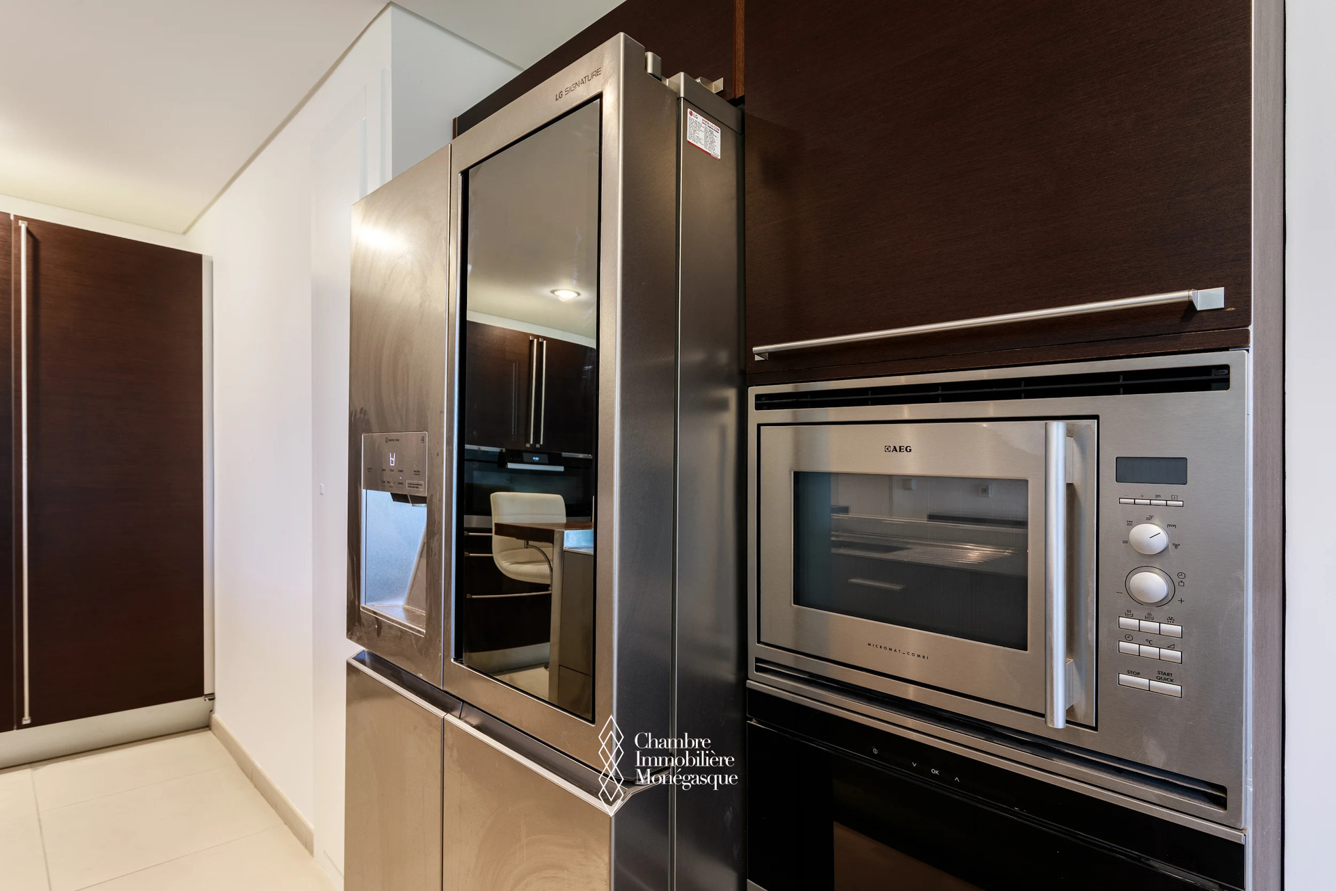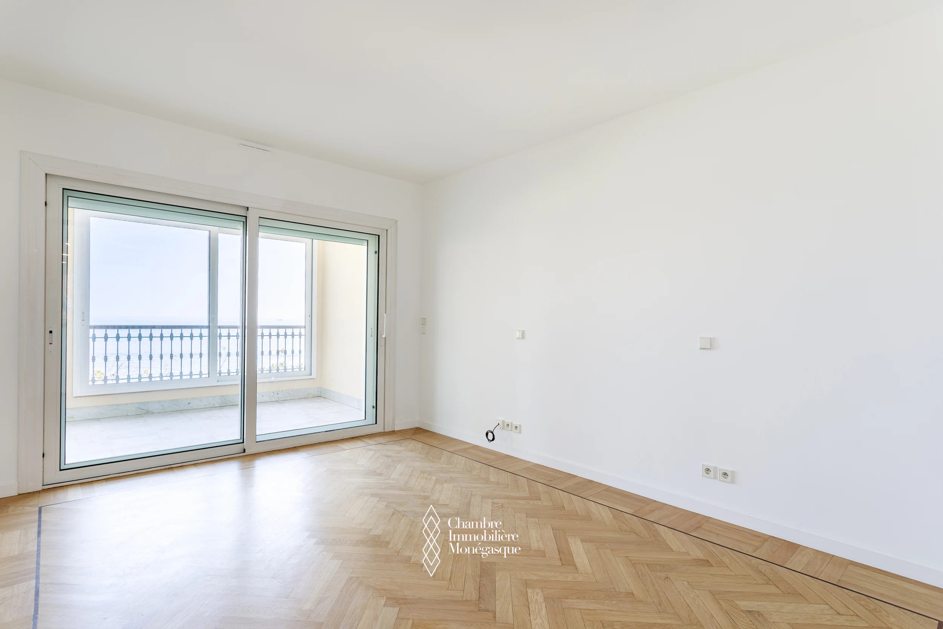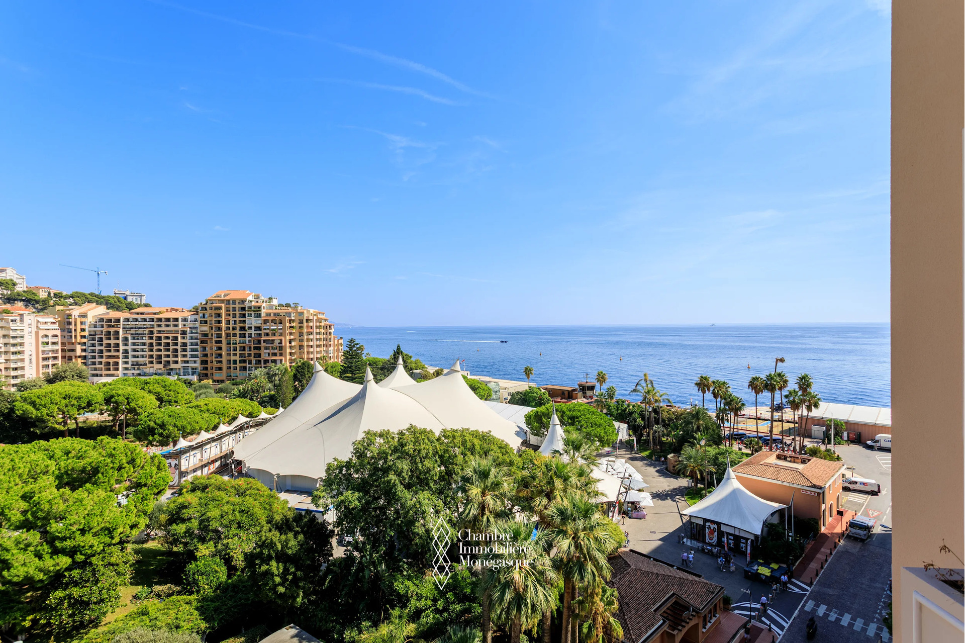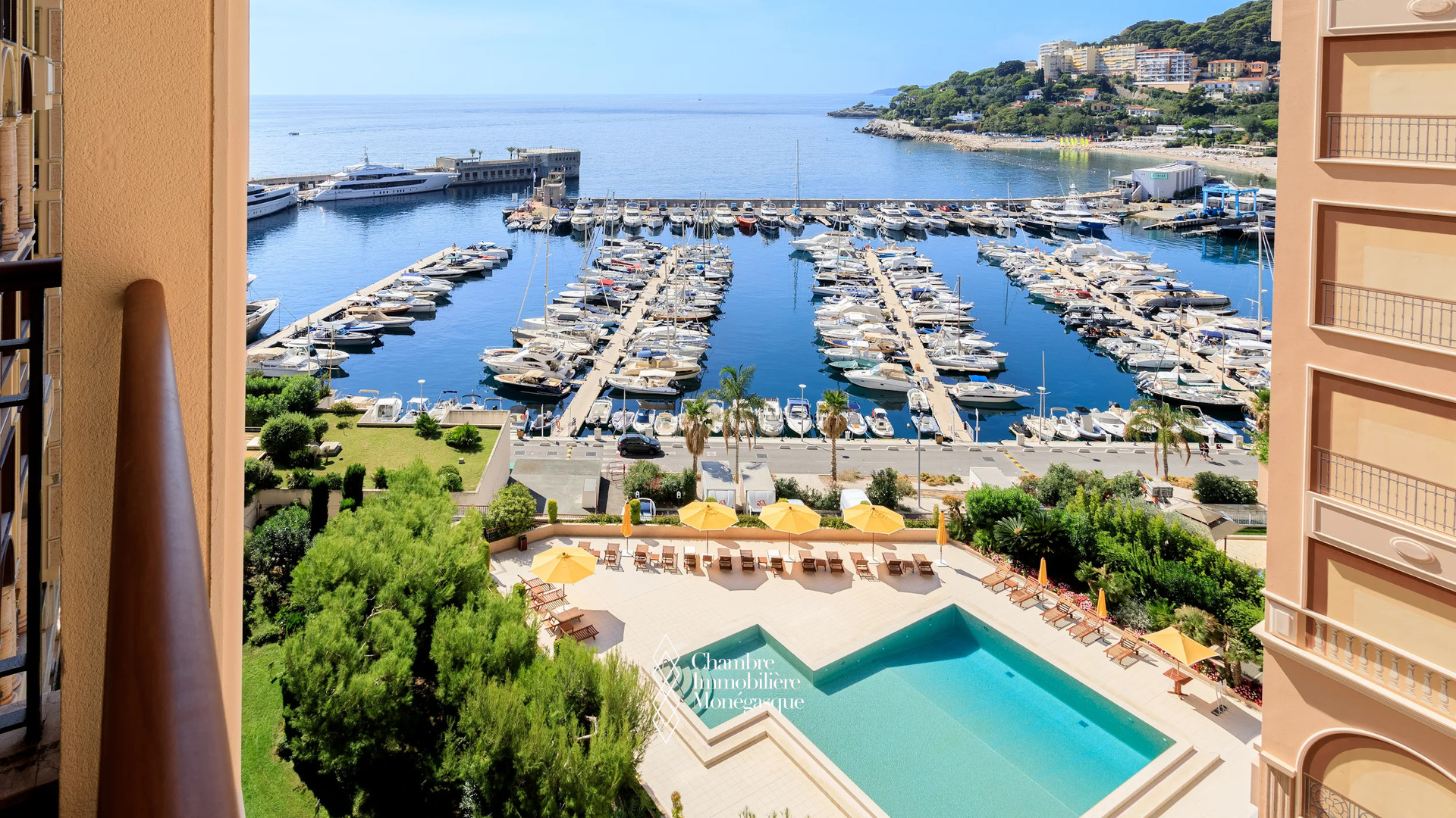 Rara ed eccezionale opportunità di acquistare un appartamento che offre una splendida vista sul mare e si trova in una lussuosa residenza nel quartiere di Fontvieille che beneficia di una piscina all'aperto, una palestra, giardini e un servizio di sicurezza e portineria 24 ore su 24.