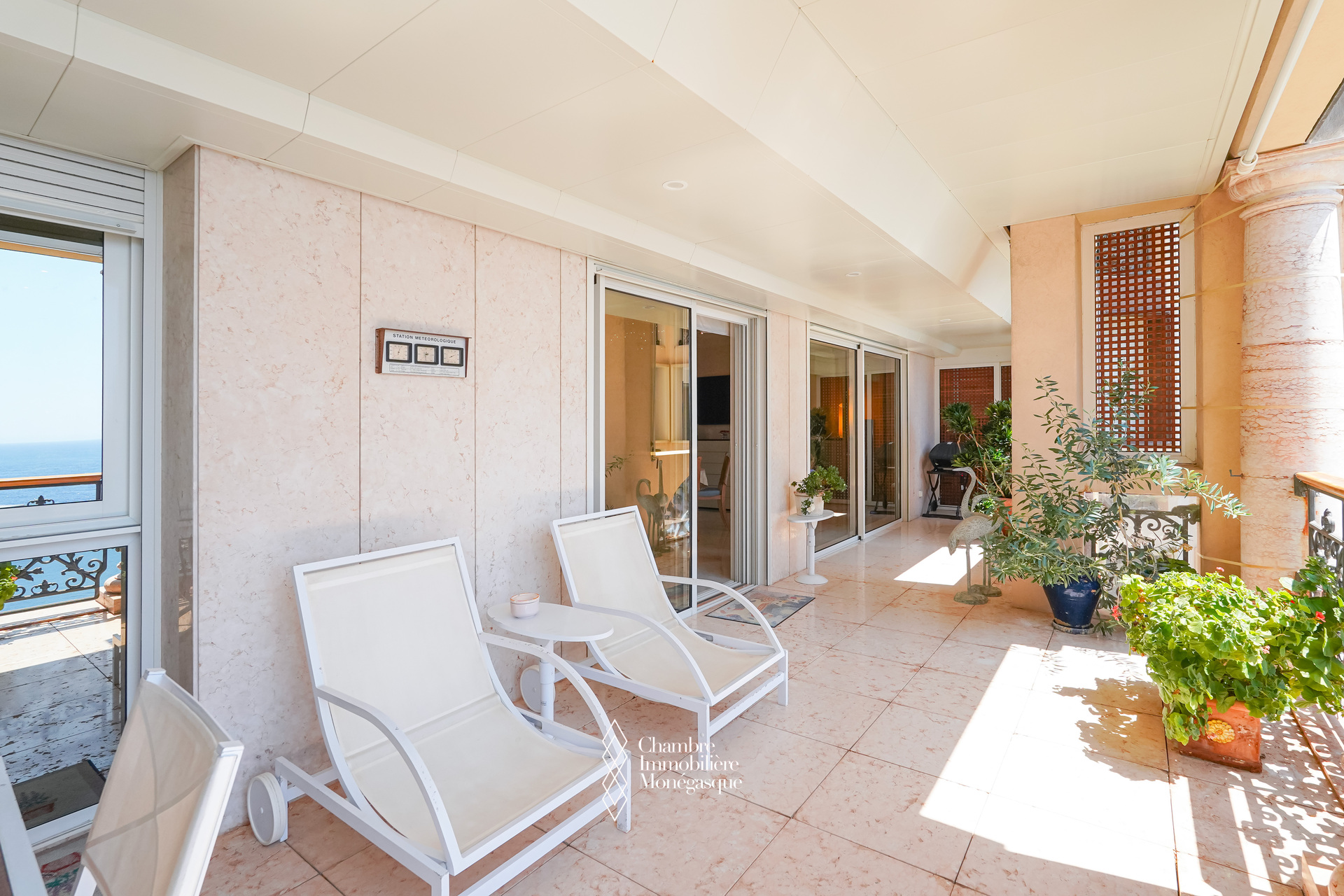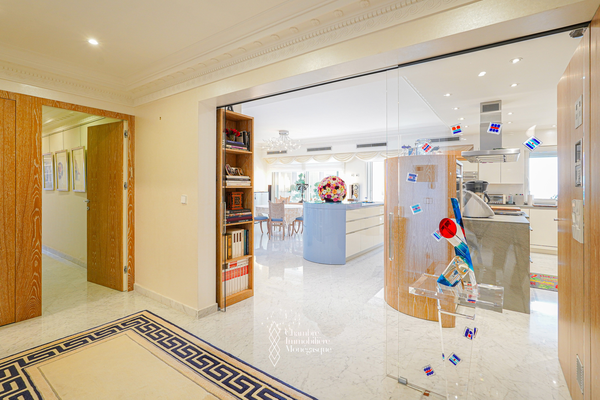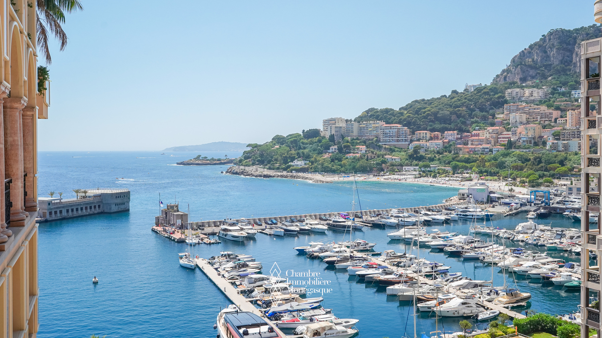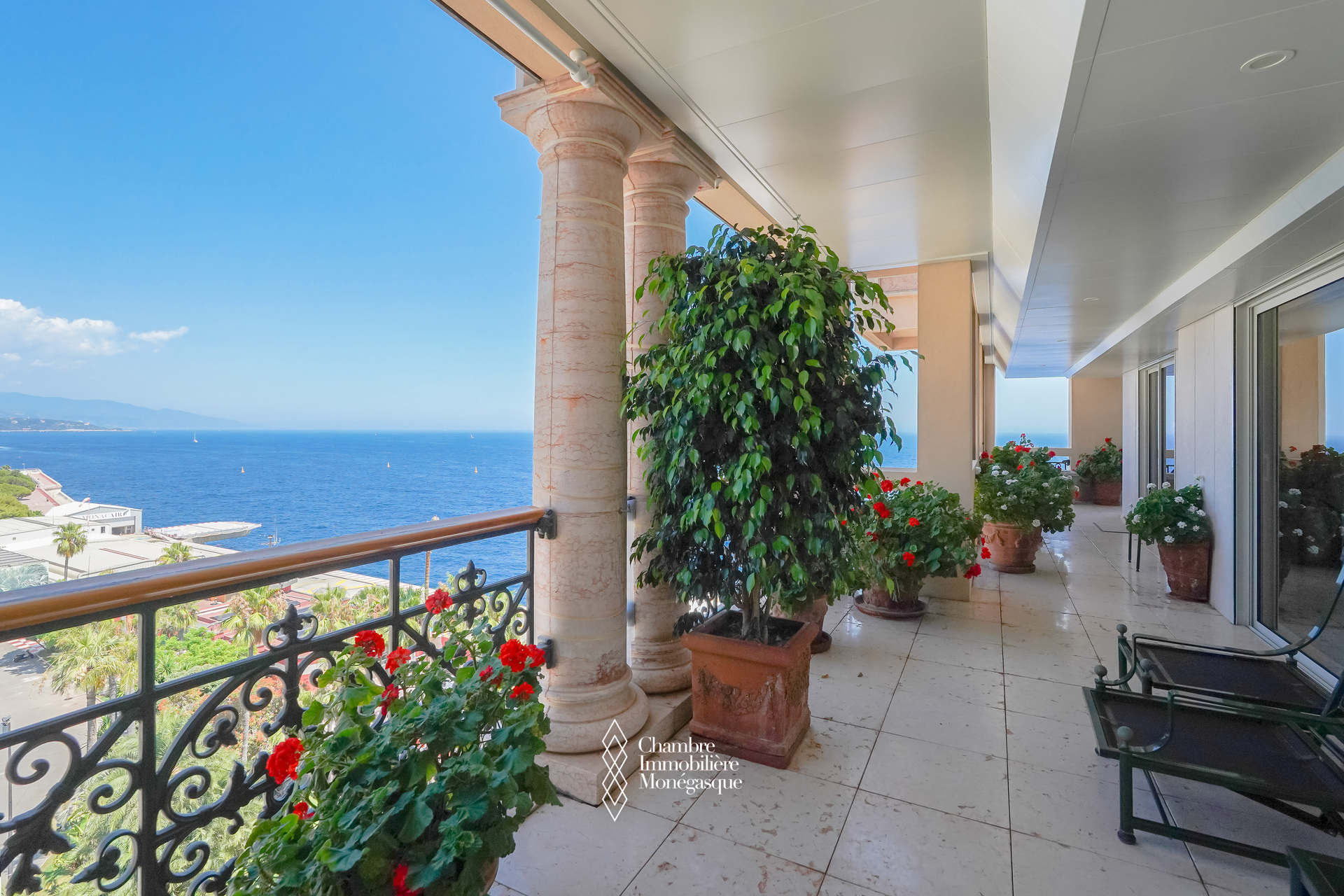 Appartamento padronale con vista mare situato in una residenza di lusso nel quartiere di Fontvieille. Servizi di fascia alta e ascensore privato per l'appartamento.