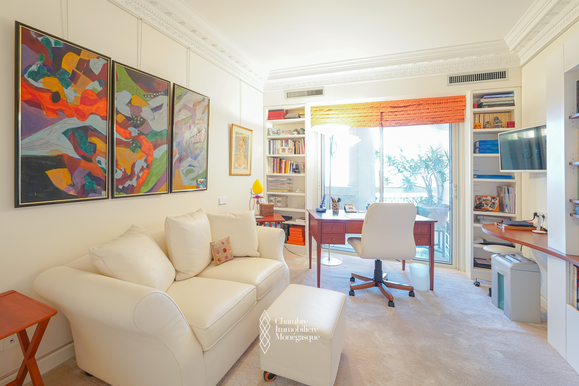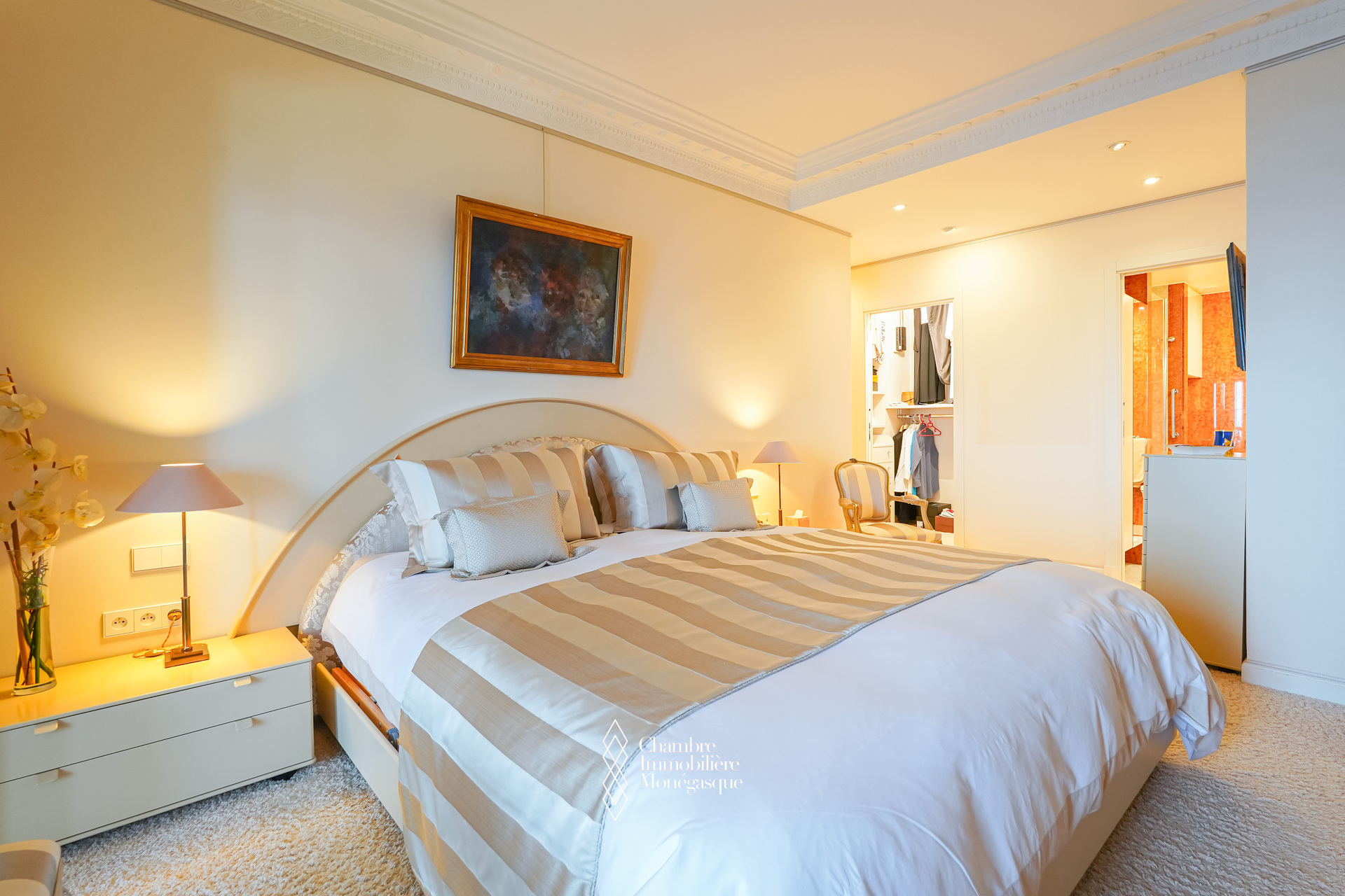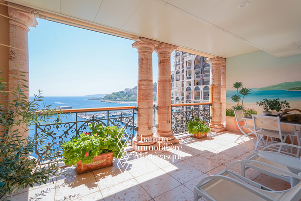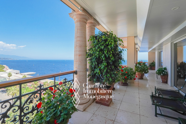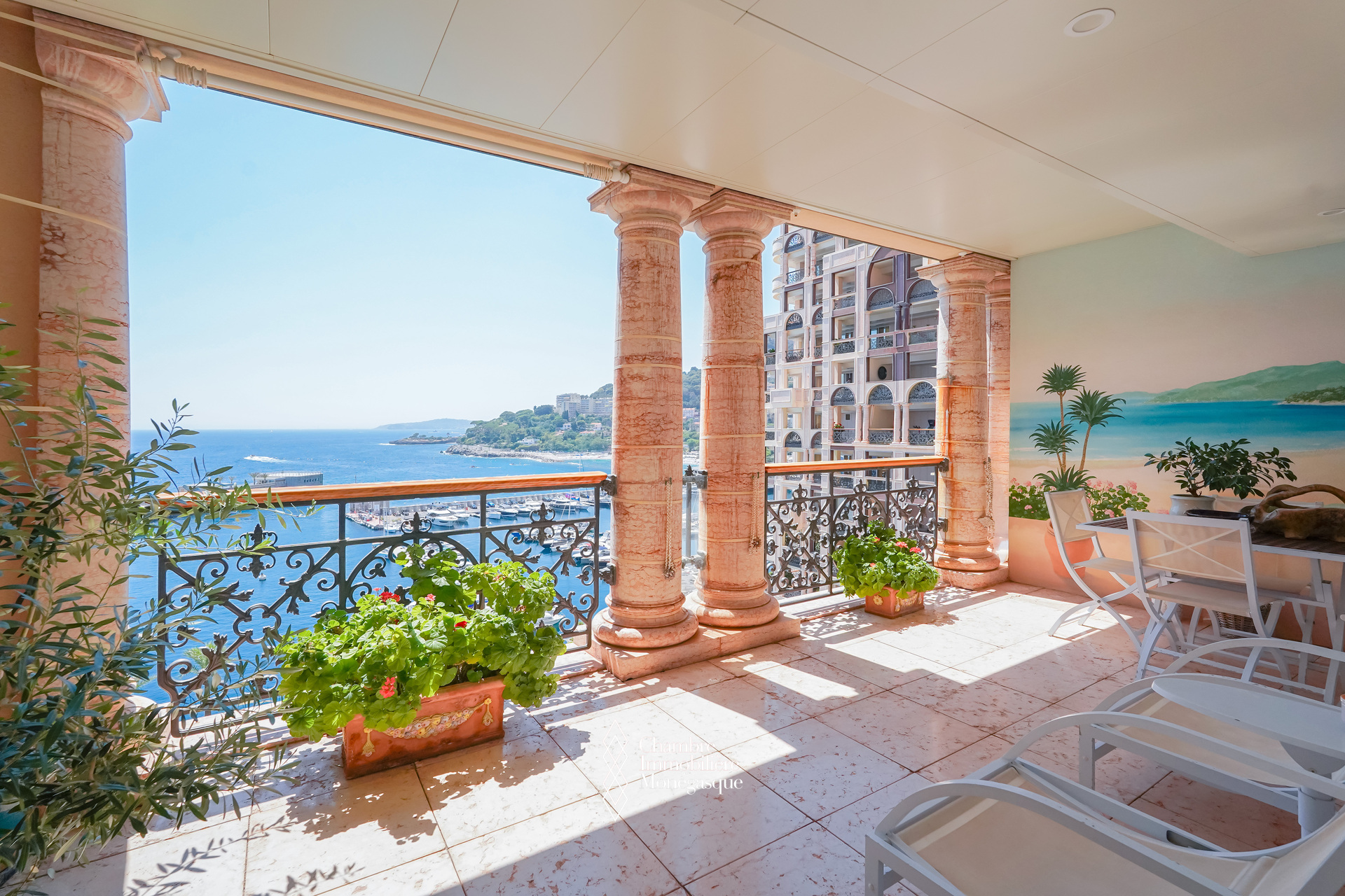 Appartamento padronale con vista mare situato in una residenza di lusso nel quartiere di Fontvieille. Servizi di fascia alta e ascensore privato per l'appartamento.