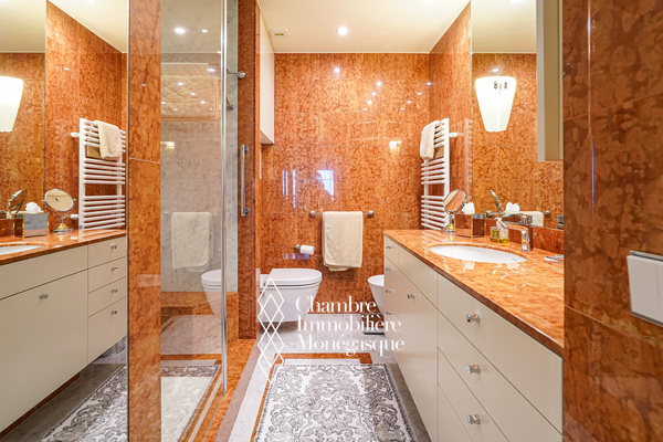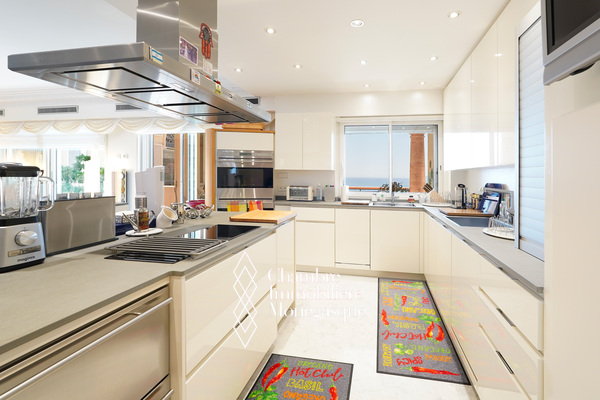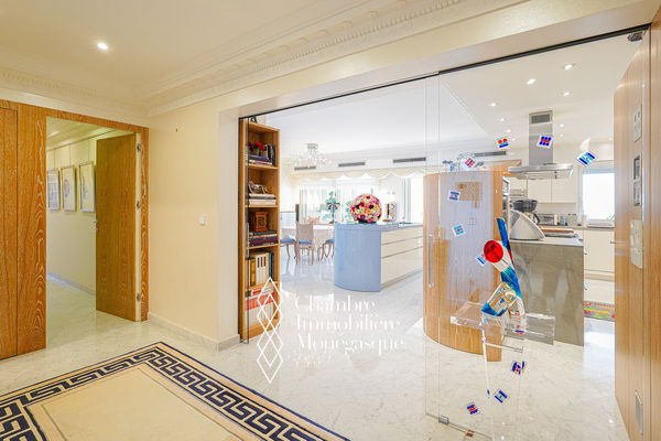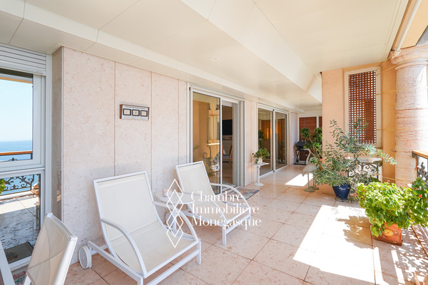 Questo ampio appartamento, situato a un piano alto, gode di una tripla esposizione che garantisce una luminosità ottimale durante tutta la giornata. Le terrazze, che circondano l’appartamento, si affacciano sul mare, sul quartiere di Fontvieille, sul Rocher e sul porto di Cap d’Ail. Due ascensori conducono direttamente all’interno dell’appartamento.