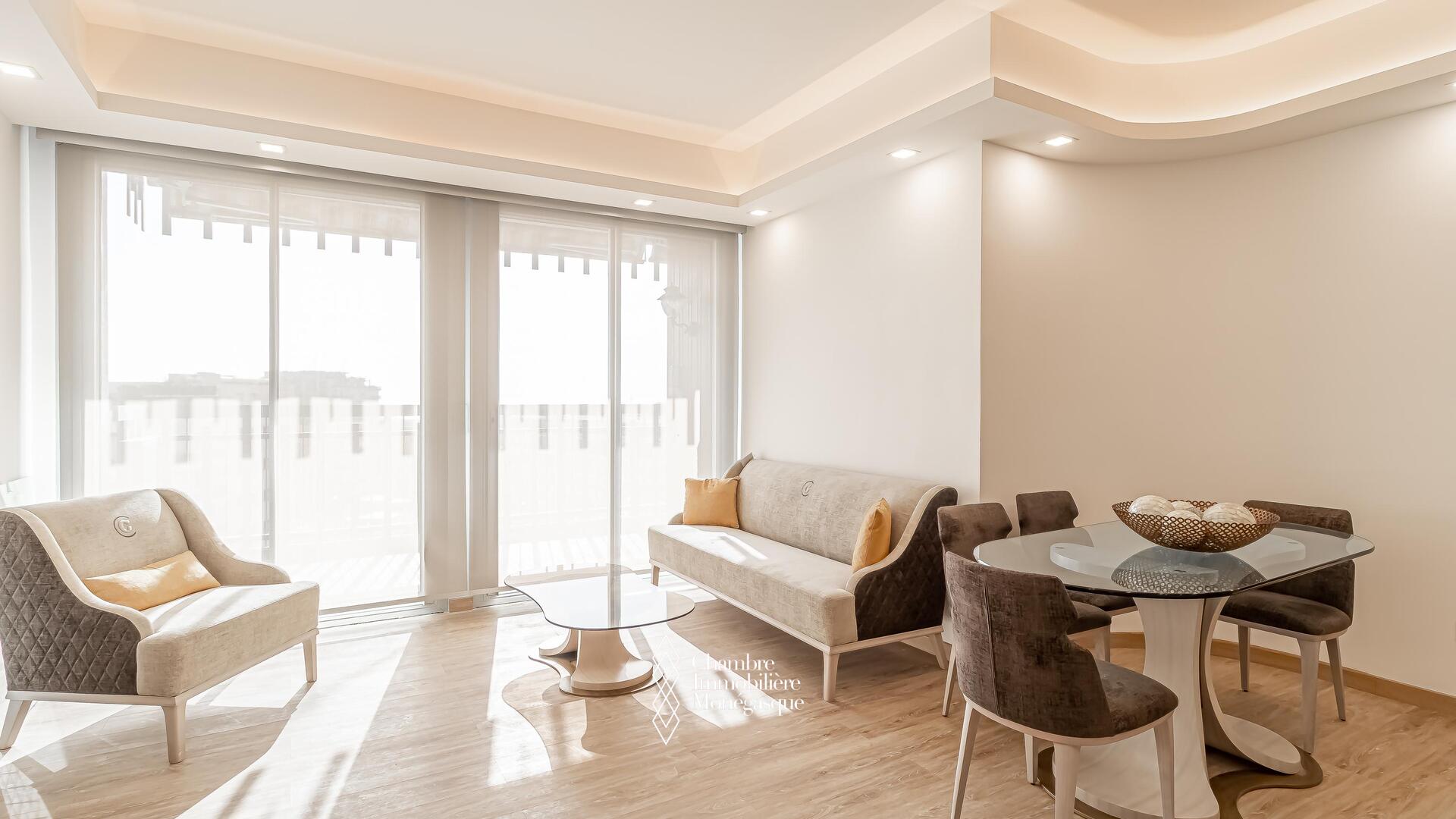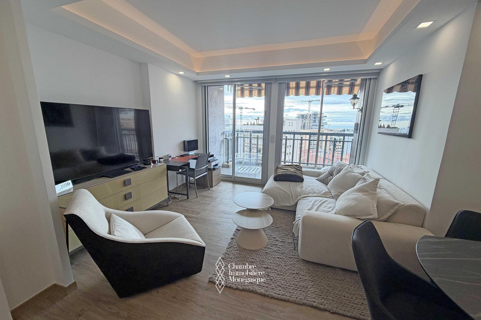 Con una superficie di 115m2 di cui 90m2 abitabili, questo bellissimo appartamento completamente ristrutturato e arredato offre una vista molto piacevole sul mare e sul Principato.