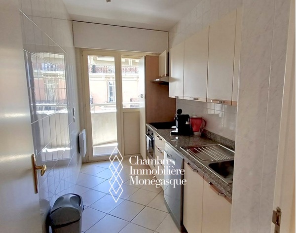 Sul boulevard d'Italie a pochi passi dalle spiagge del Larvotto, bel TRILOCALE, in stabile di ottimo standing, proposto con CANTINA e PARCHEGGIO L'appartamento è anche alla vendita