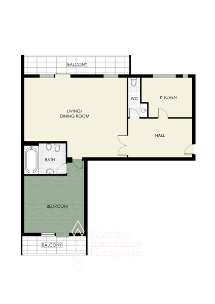 L'appartement se compose d'une spacieuse entrée menant vers le salon / salle à manger ouvrant sur un balcon avec vue ville, une cuisine indépendante, une chambre lumineuse profitant d'un balcon donnant sur les jardins de la résidence, salle de douche et WC d'invités.