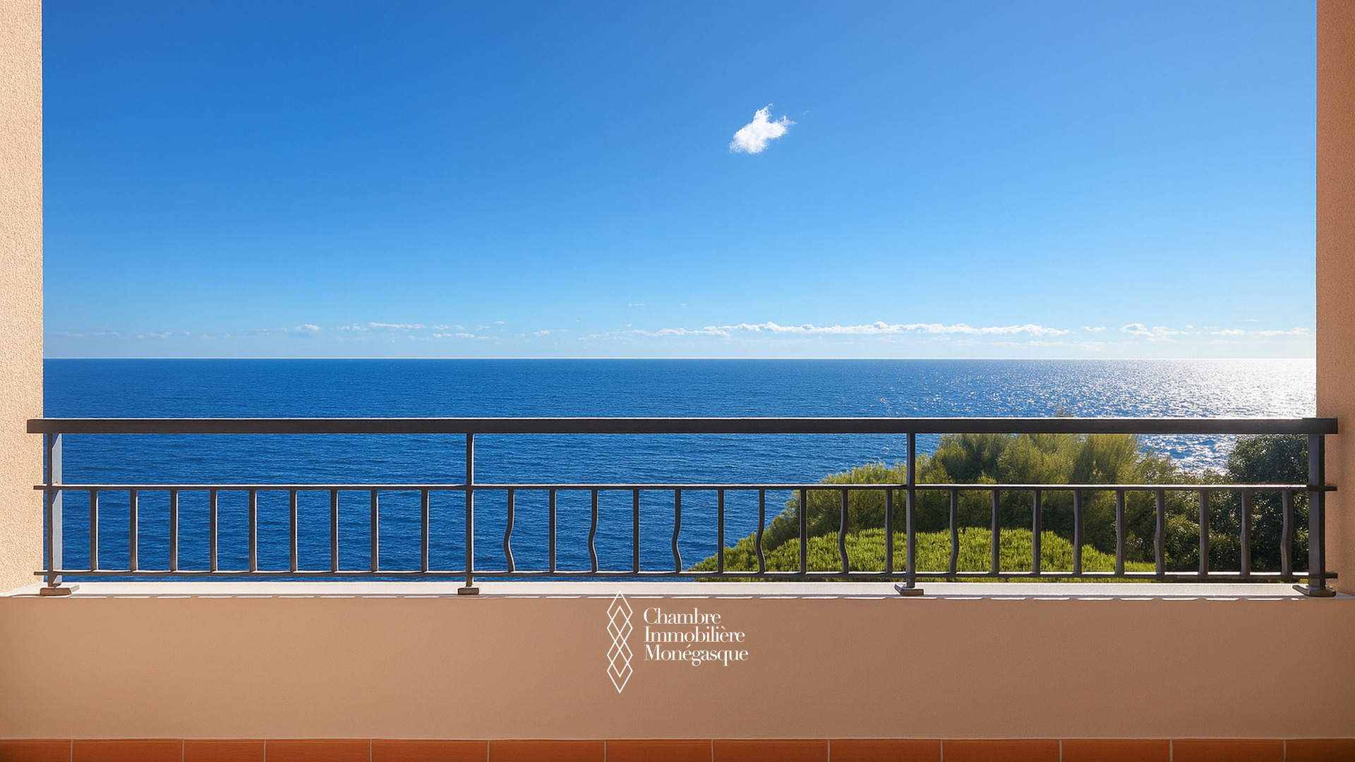 Il balcone principale, profondo e trasformabile, permette di ricevere o rilassarsi in completa privacy, senza alcun vis-à-vis, godendo di una vista mozzafiato sul Mediterraneo e sui giardini sottostanti.